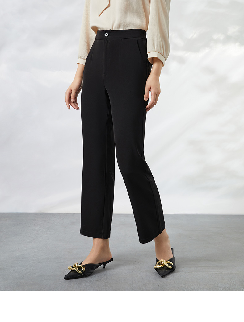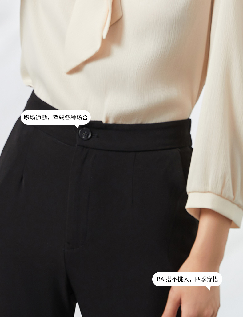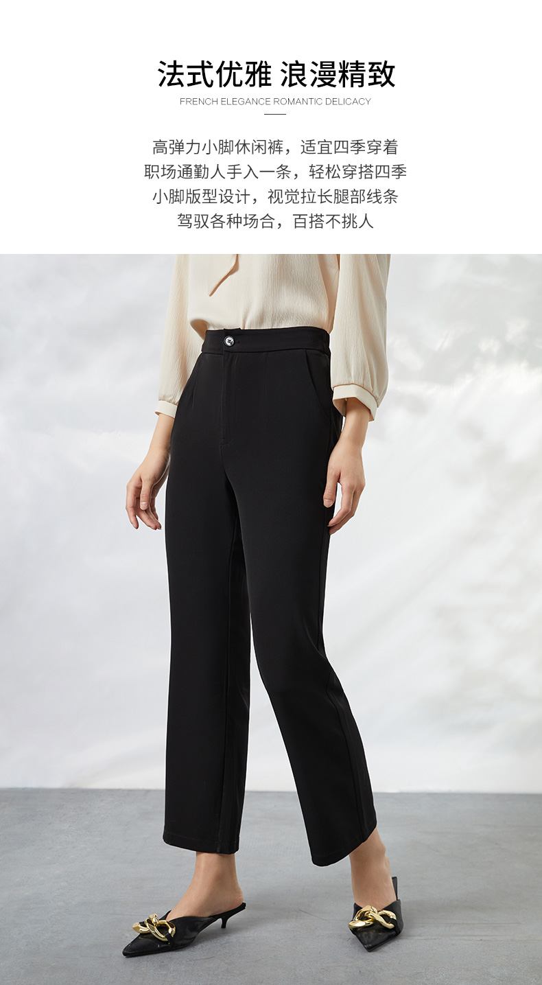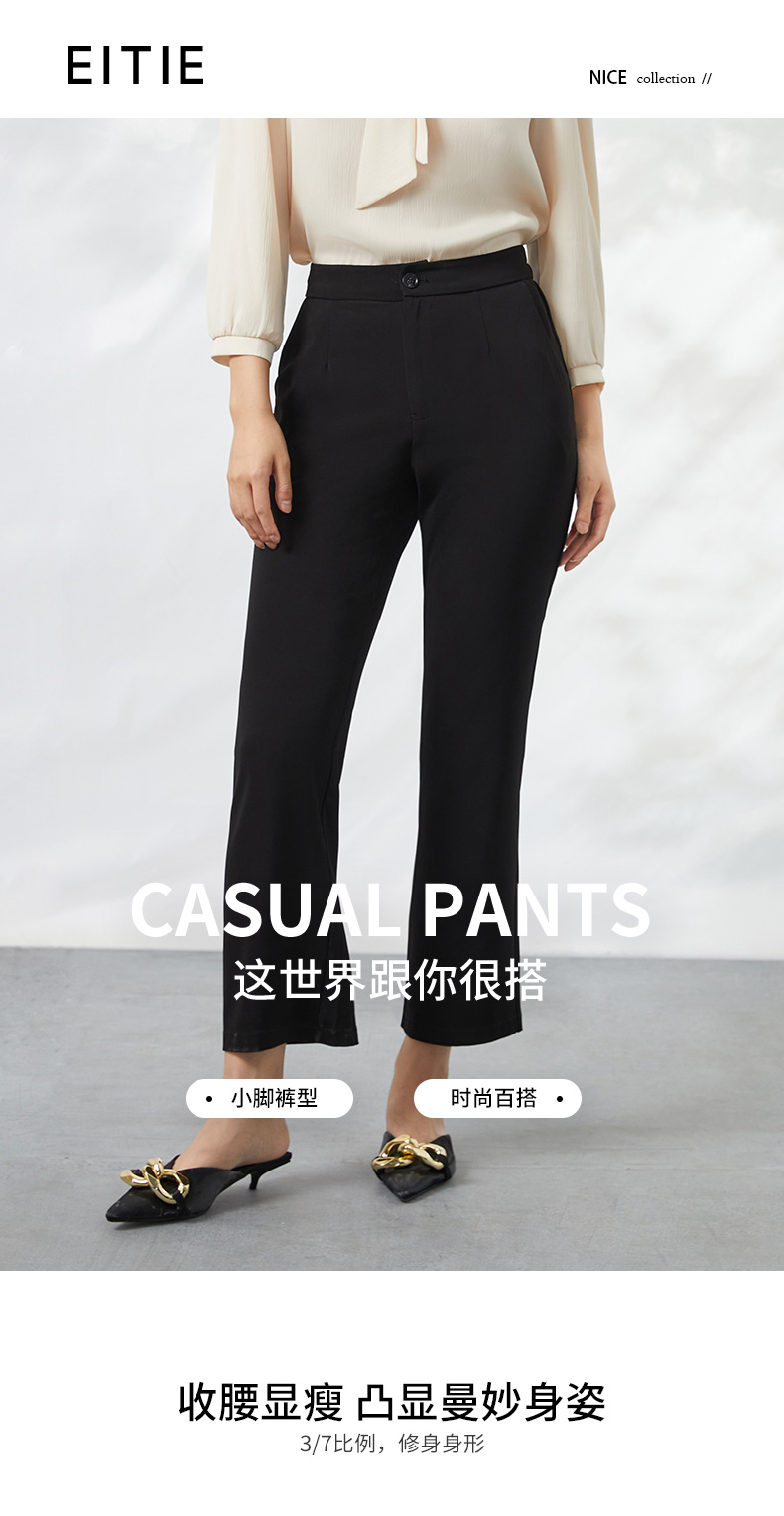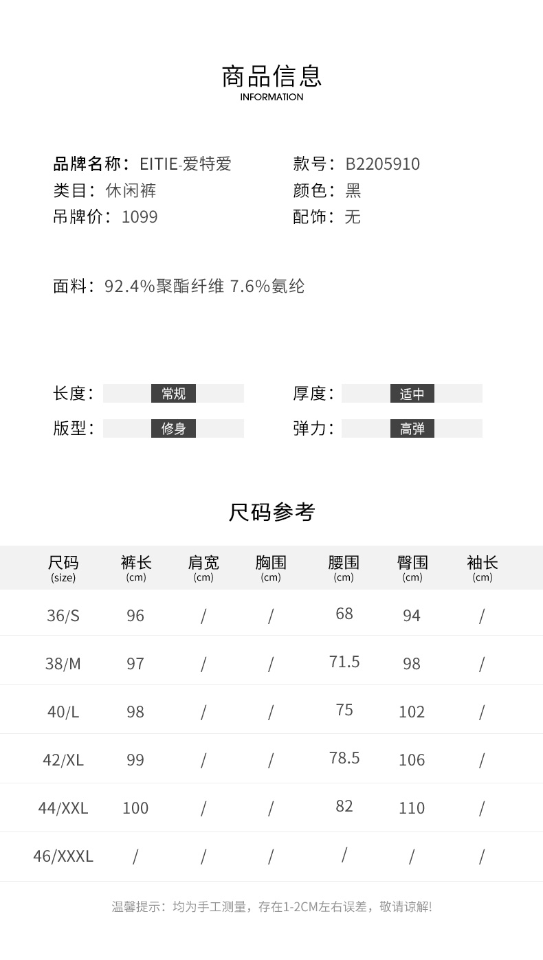 EITIE爱特爱夏季新款百搭显瘦修身铅笔裤黑色高腰休闲长裤女B2205910