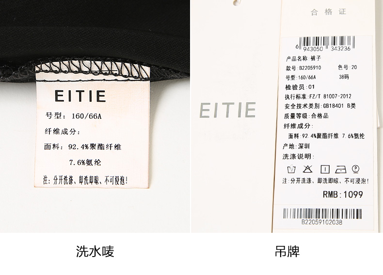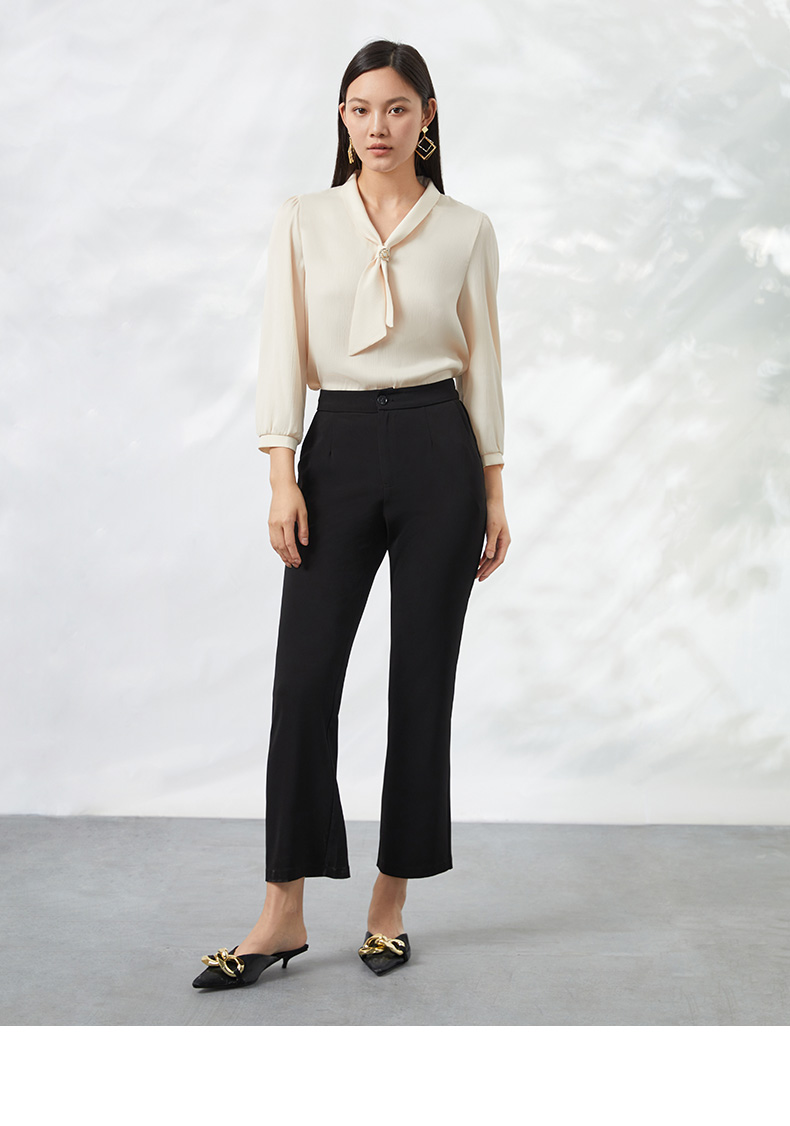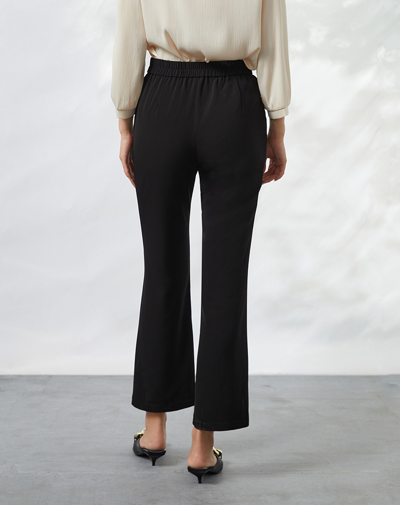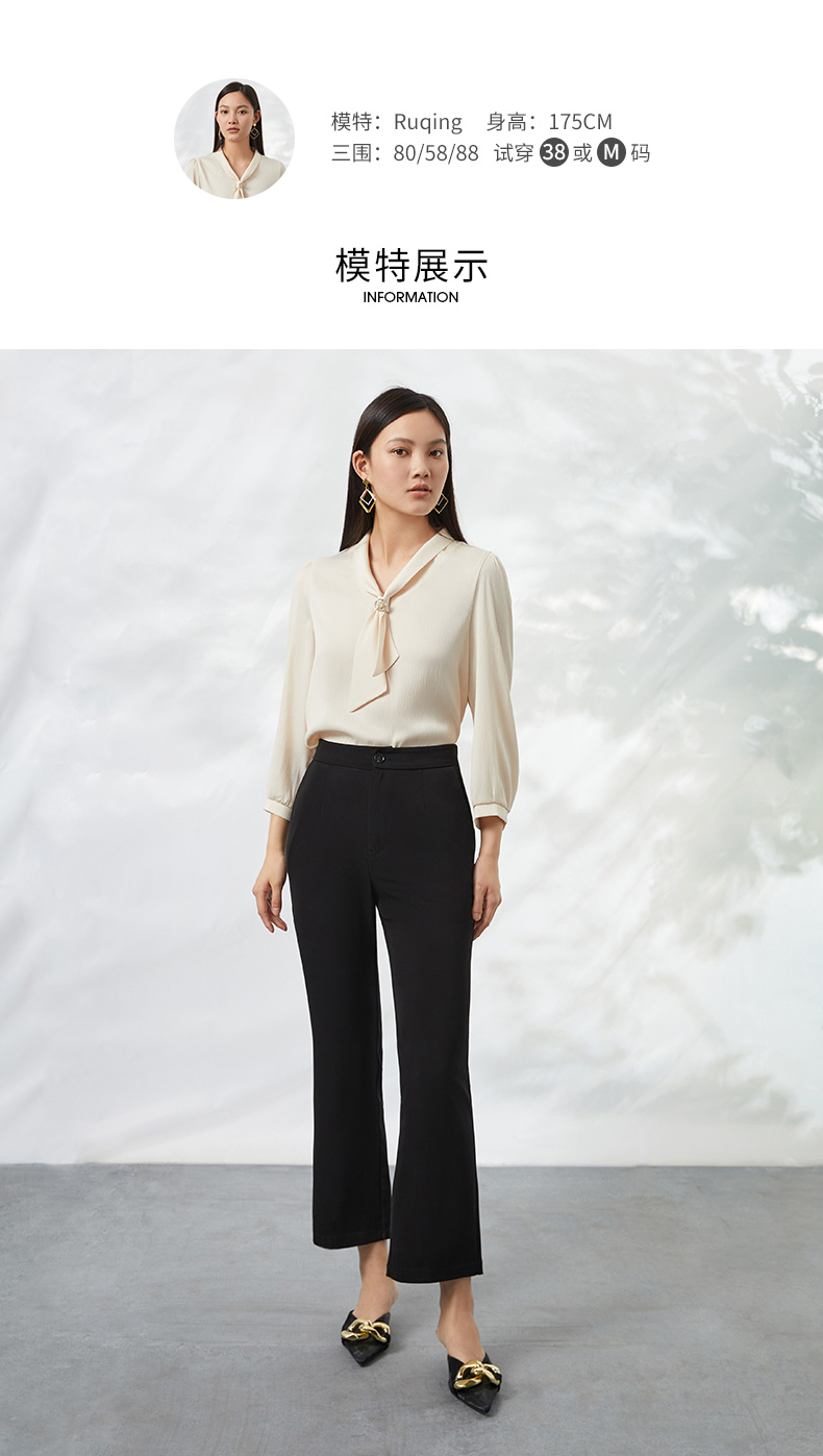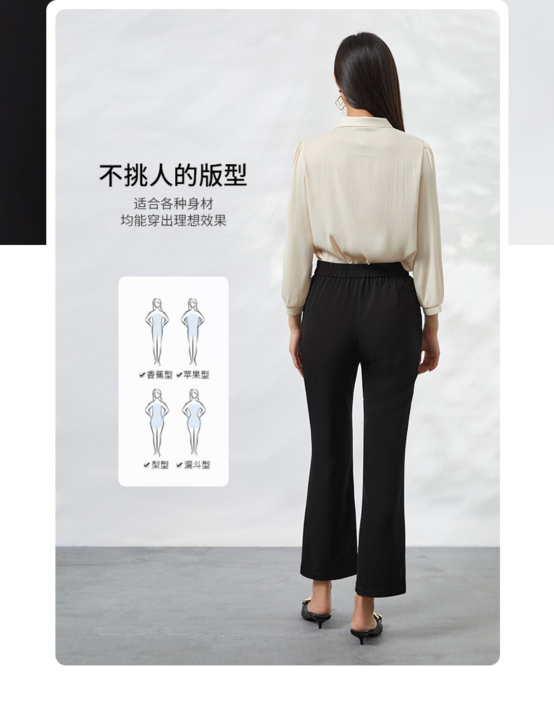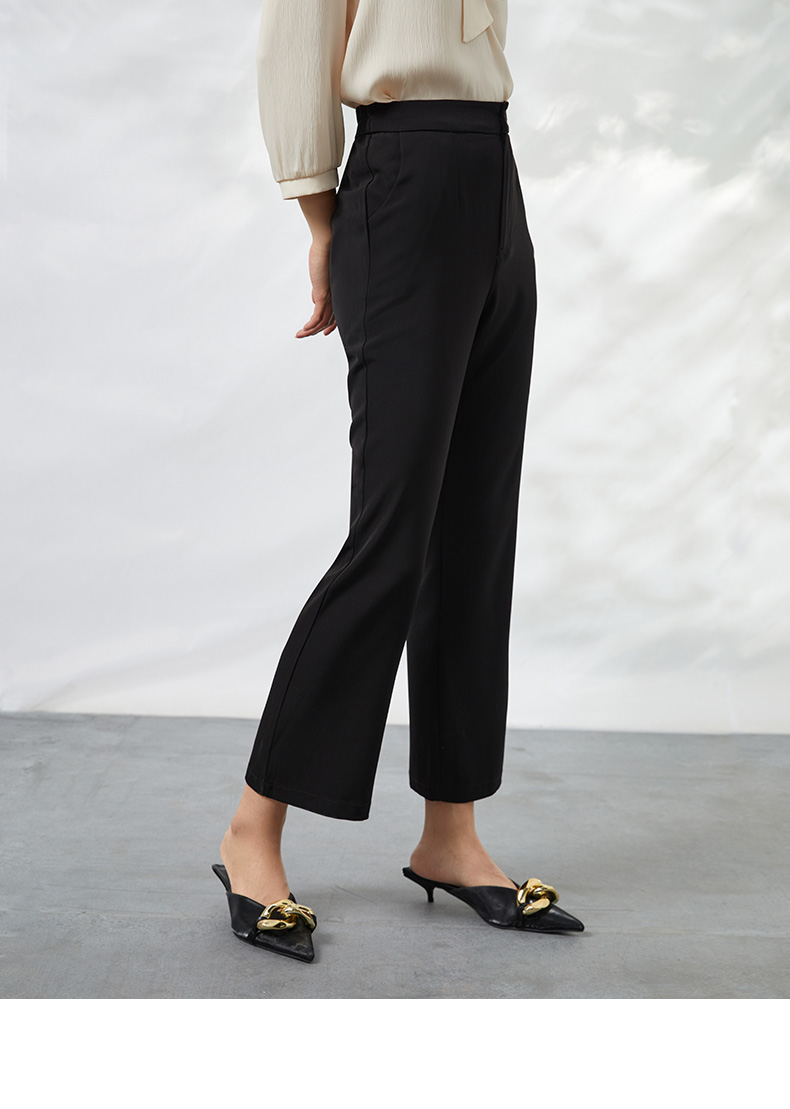 EITIE爱特爱夏季新款百搭显瘦修身铅笔裤黑色高腰休闲长裤女B2205910