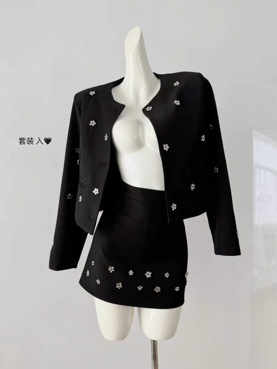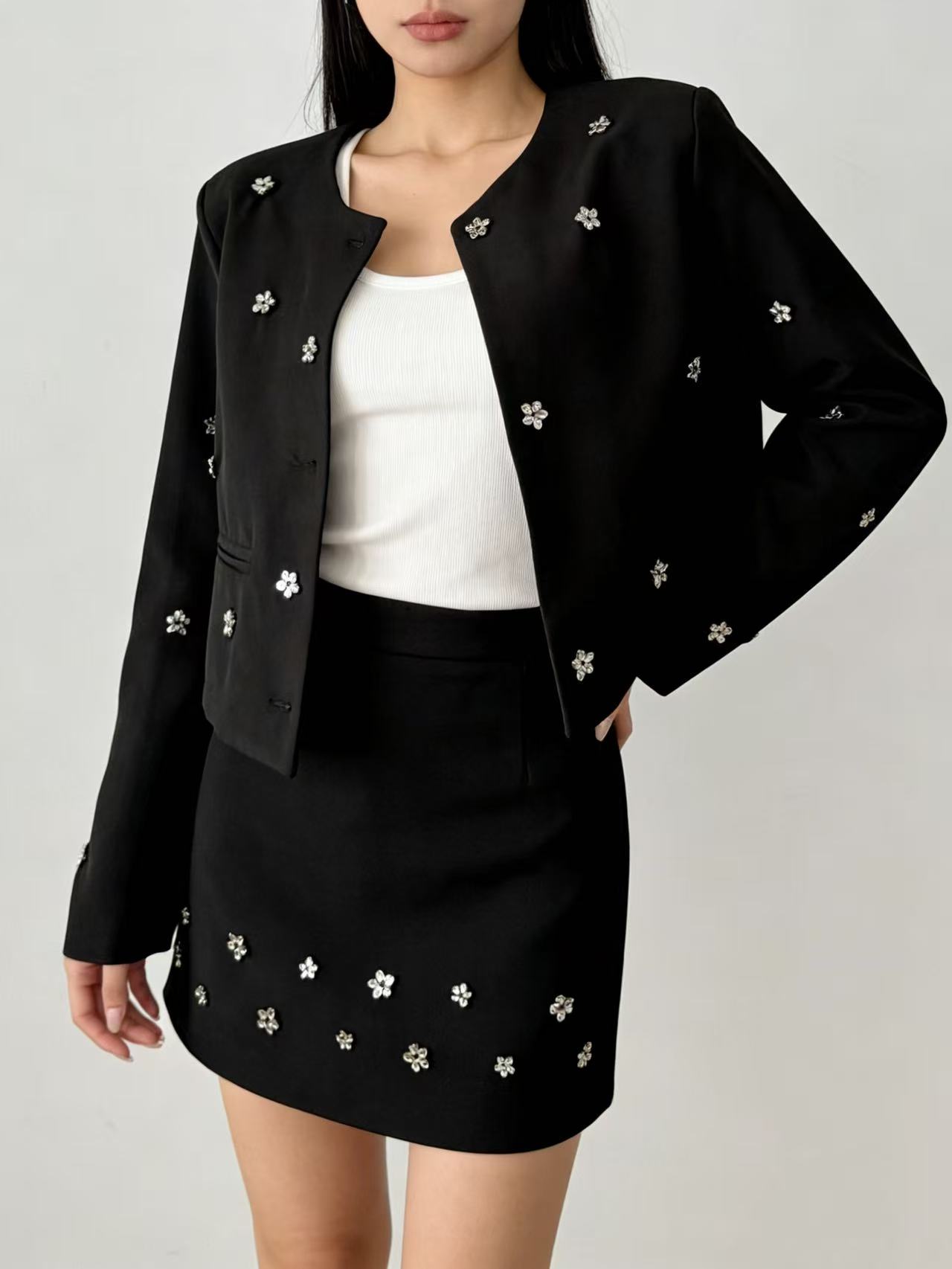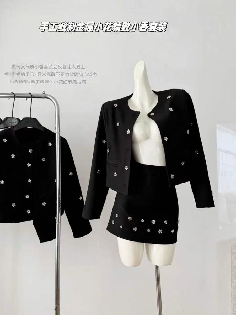 418良粉节|2026 活动爆款~【自营】衣周期~(二件套)Q29外套+半裙手工缝制金属小花高级感小香风套装-喜出