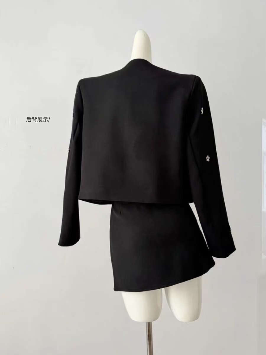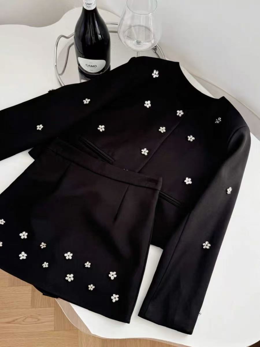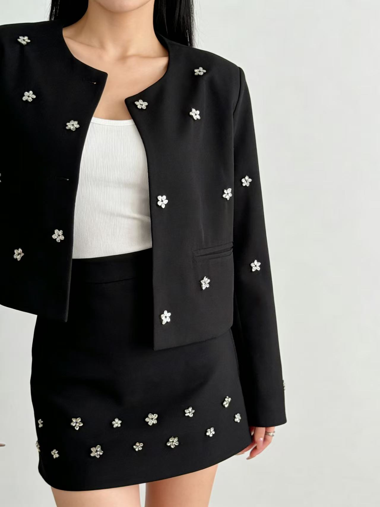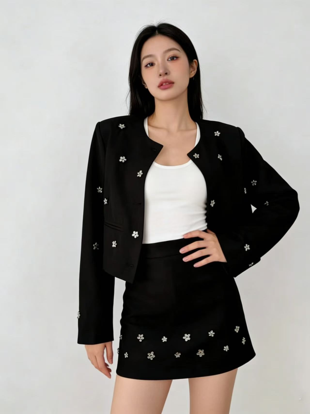 418良粉节|2026 活动爆款~【自营】衣周期~(二件套)Q29外套+半裙手工缝制金属小花高级感小香风套装-喜出
