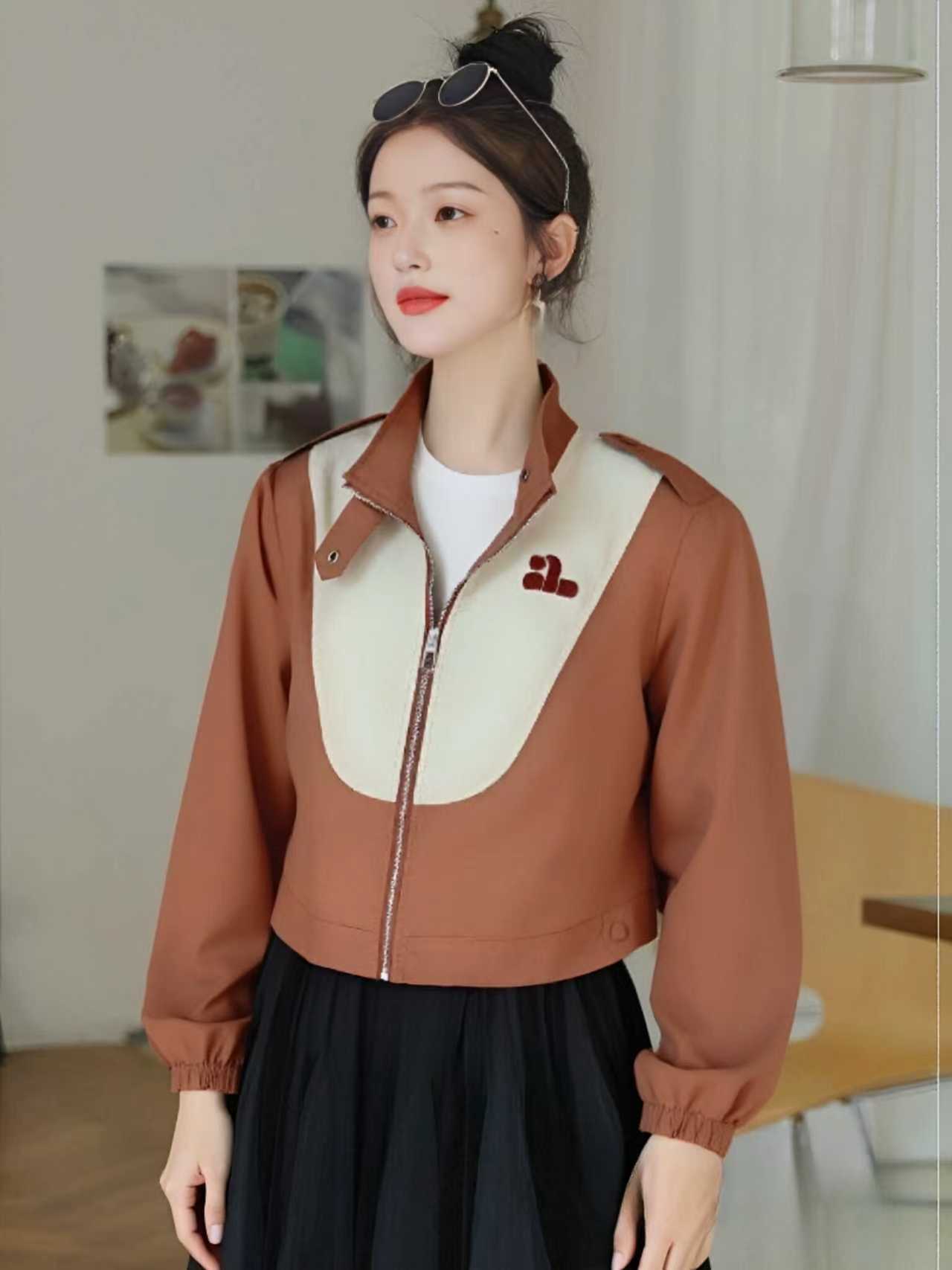 【秋新品】剪标-拼色短款小外套-喜出
