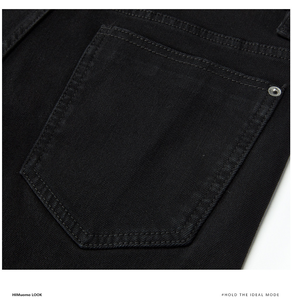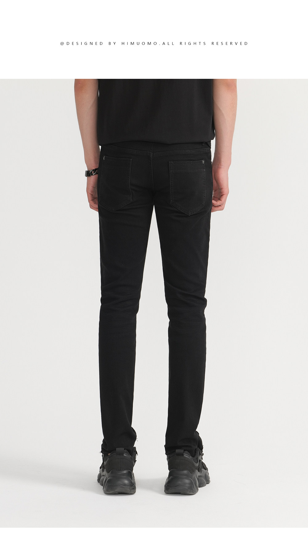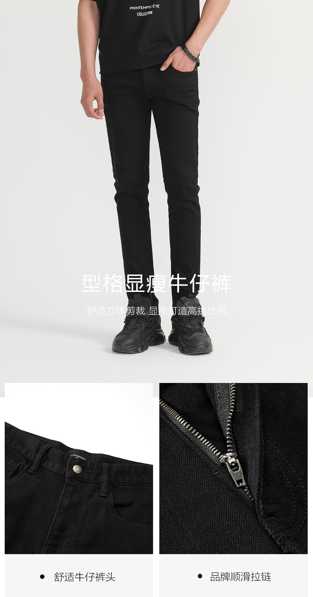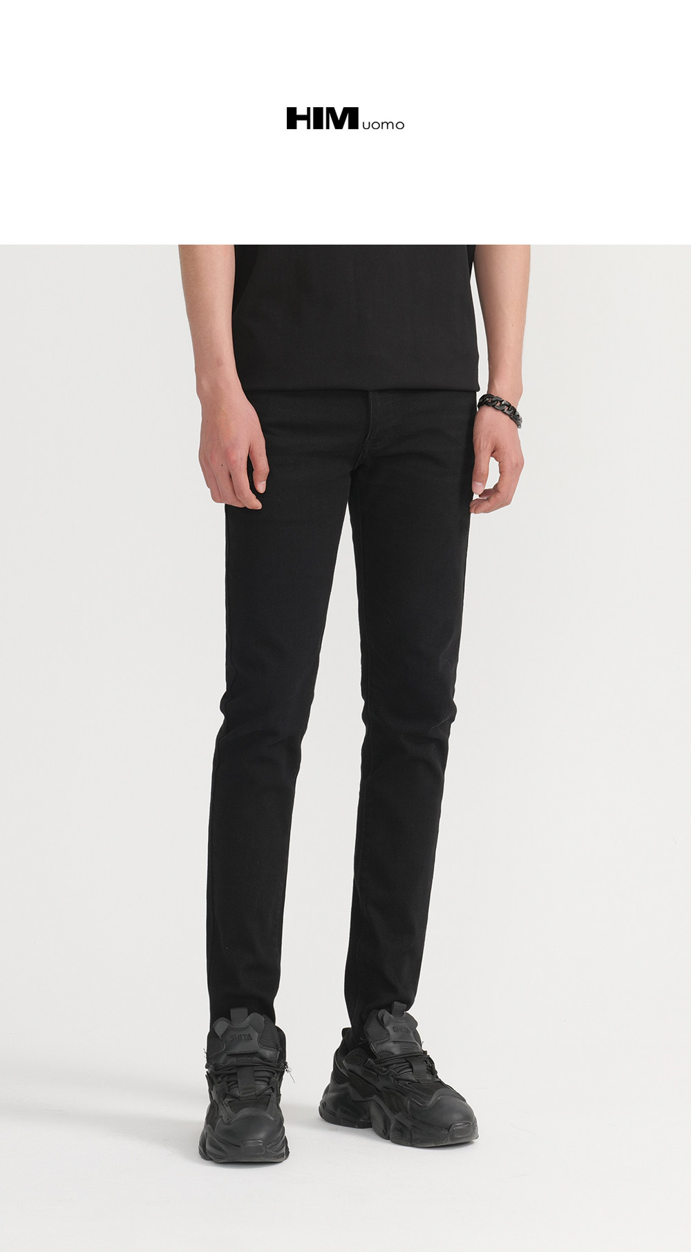 HIM漢崇 商场牛仔裤男夏天薄款皮牌黑新款潮修身小脚长裤高端