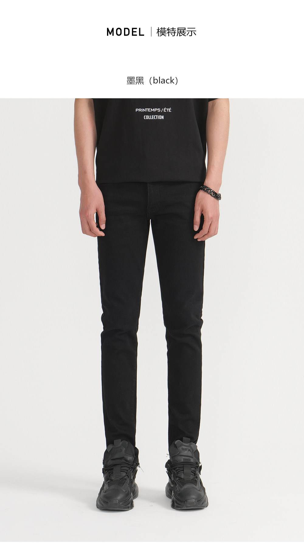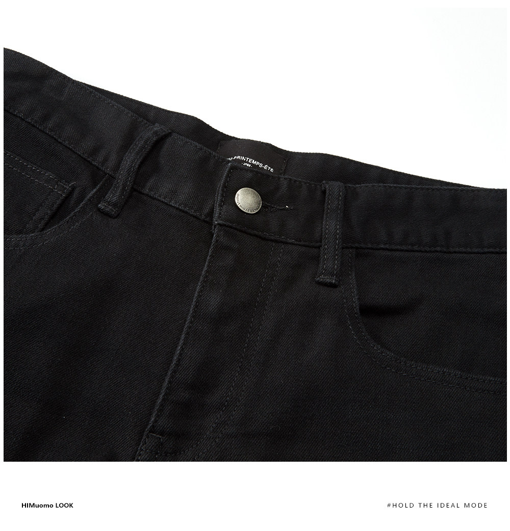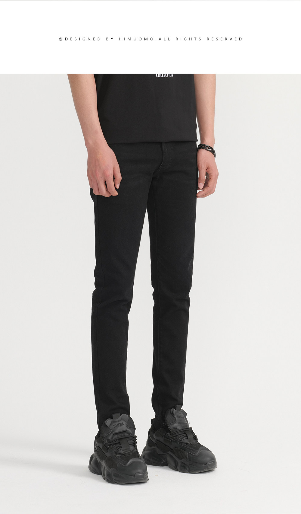 HIM漢崇 商场牛仔裤男夏天薄款皮牌黑新款潮修身小脚长裤高端