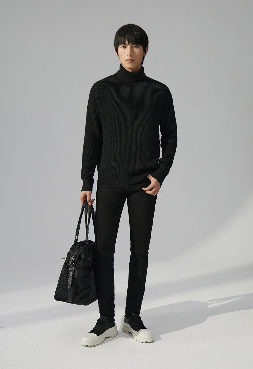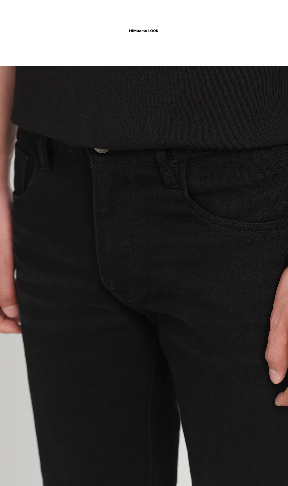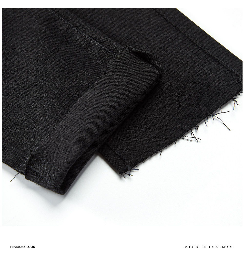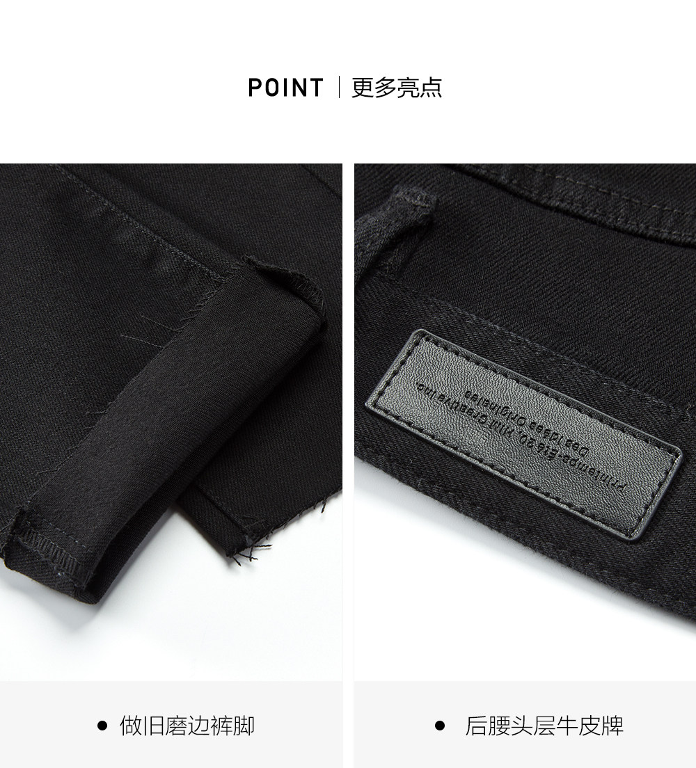 HIM漢崇 商场牛仔裤男夏天薄款皮牌黑新款潮修身小脚长裤高端
