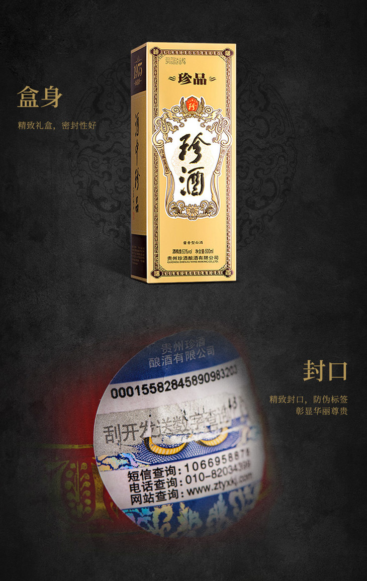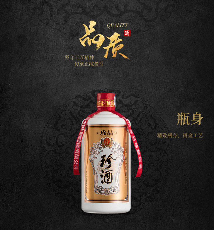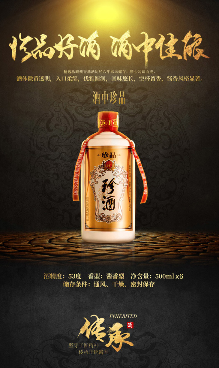 【推荐】珍酒 珍品 酱香型白酒 500ml *6瓶 整箱装 珍藏酱香 酒中珍品 53度(新老包装随机发货)