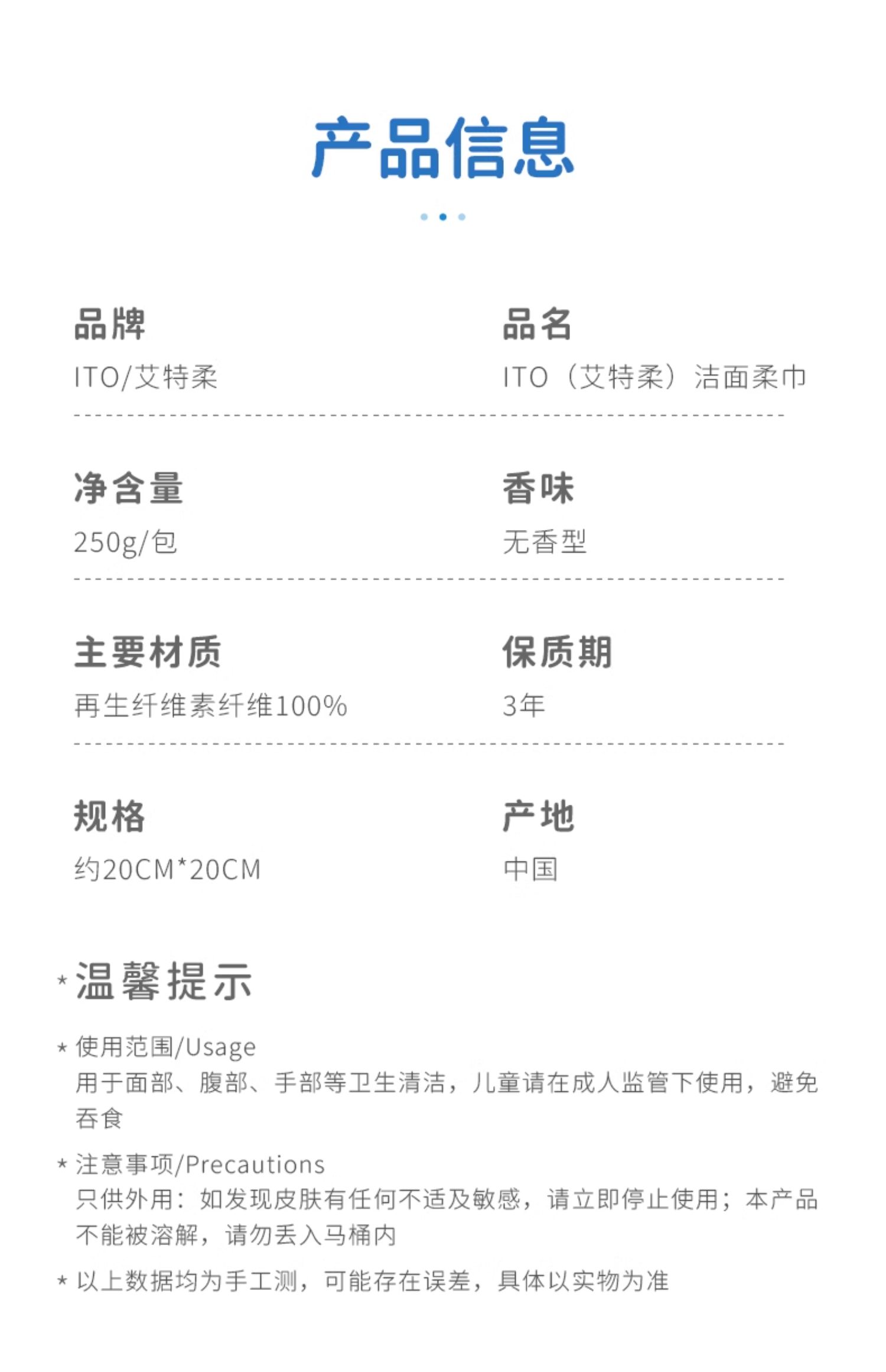 ITO(艾特柔)洁面柔巾/112616 干湿两用亲肤舒适不掉絮70抽