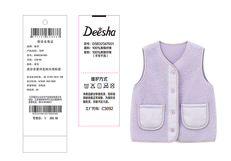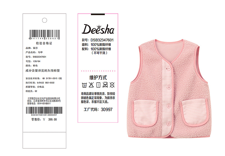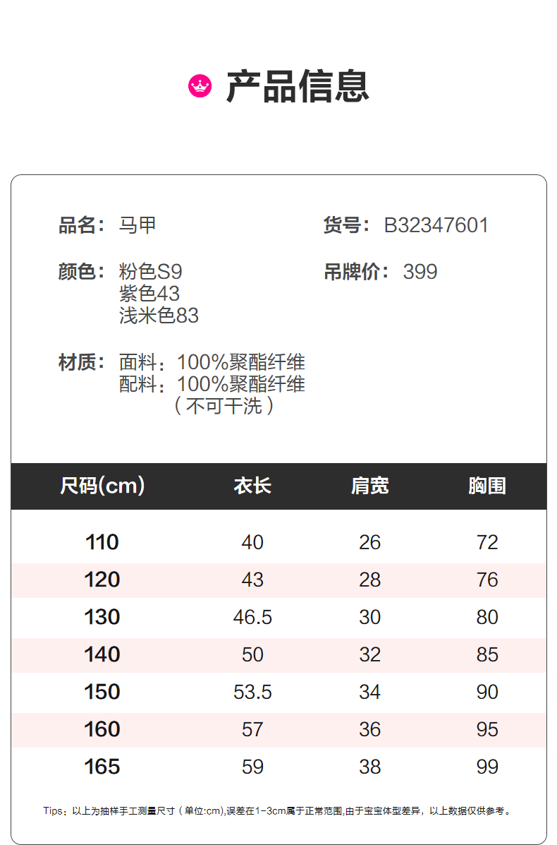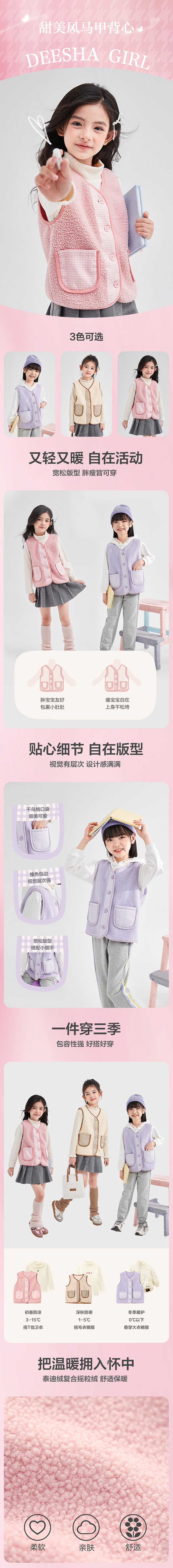 笛莎Deesha 童装2023冬季新款甜美马甲