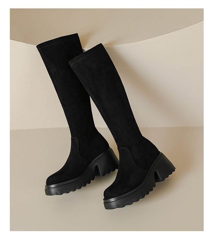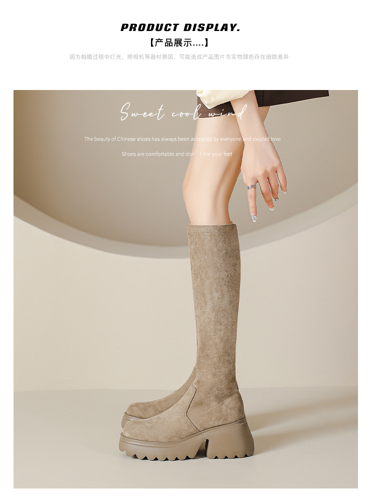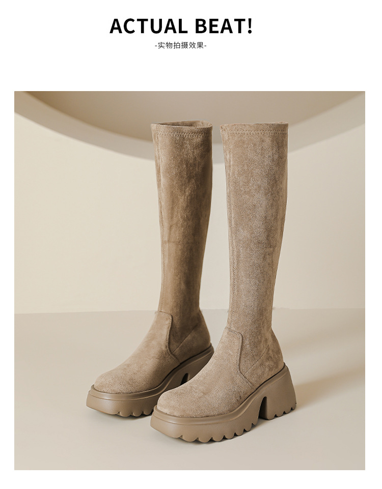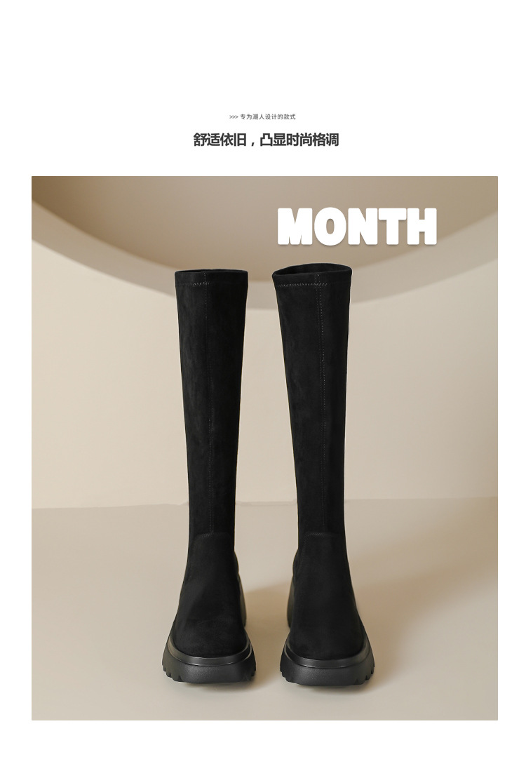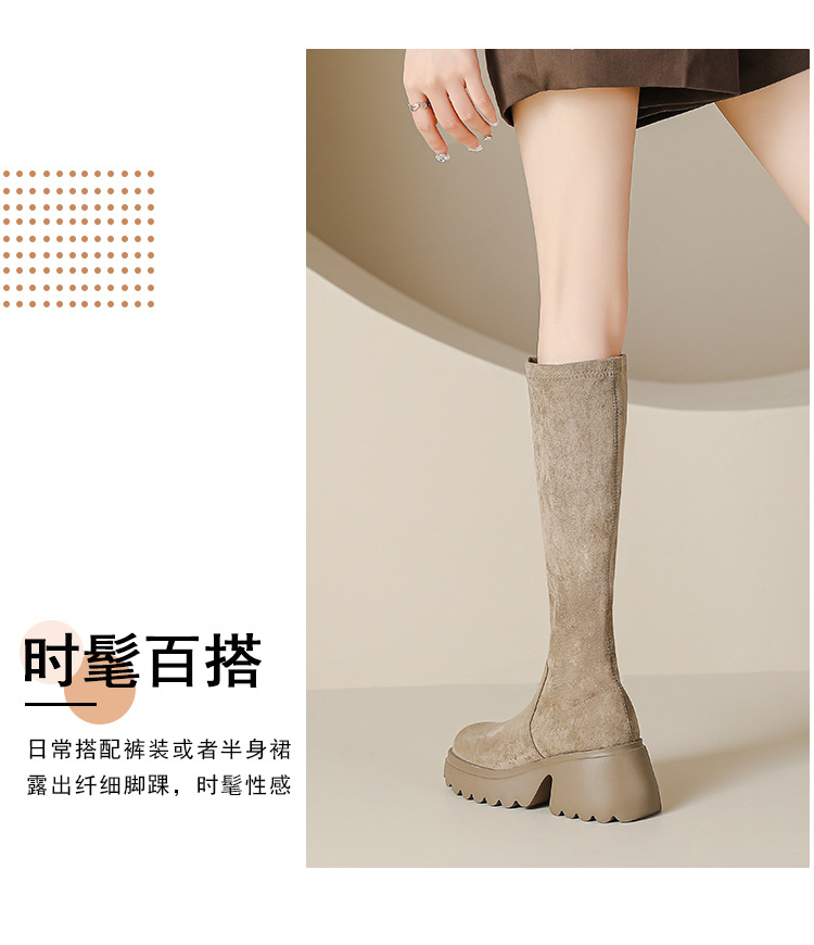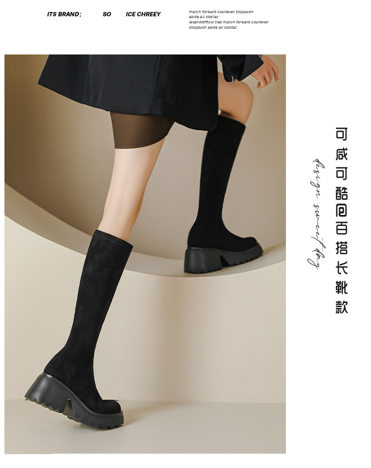 厚底长靴女2023秋冬高筒靴7cm高跟防水台增高弹力及膝松糕底靴子
