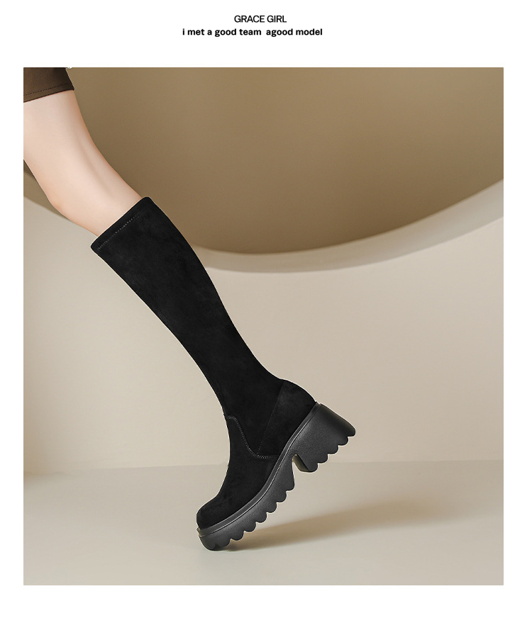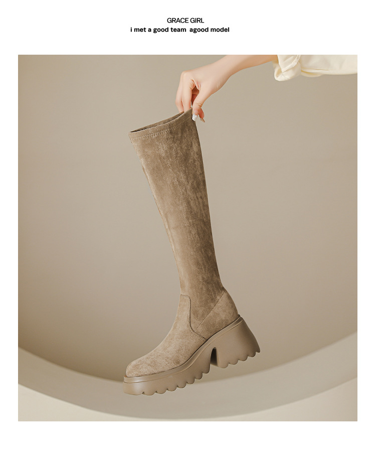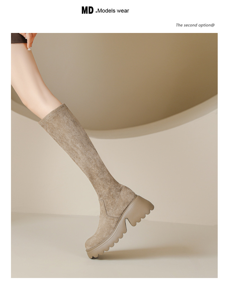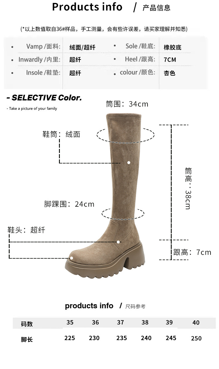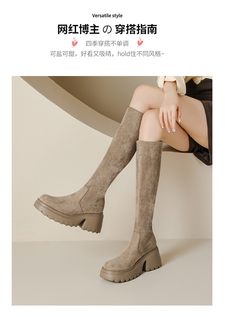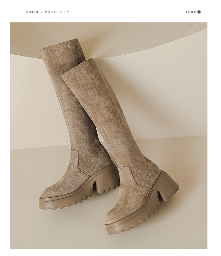厚底长靴女2023秋冬高筒靴7cm高跟防水台增高弹力及膝松糕底靴子