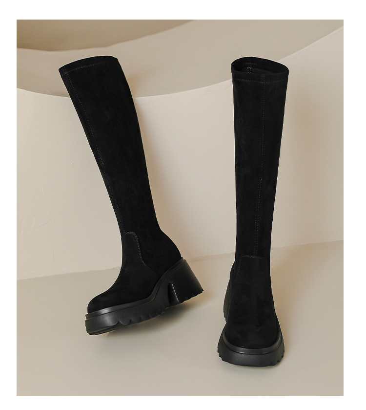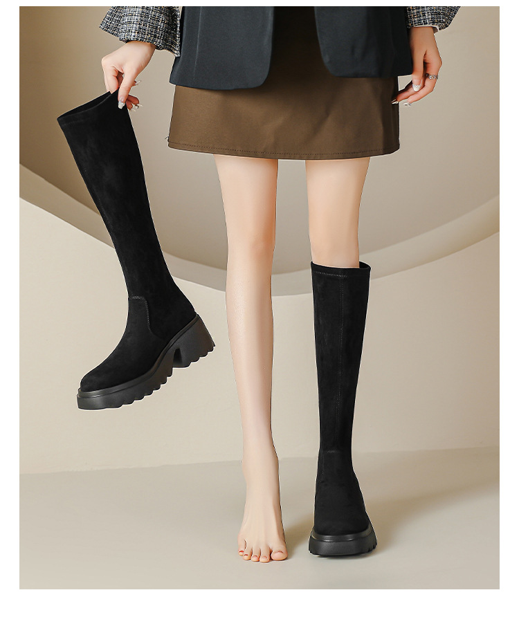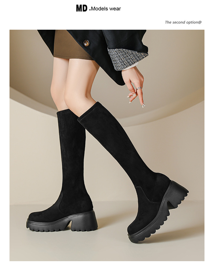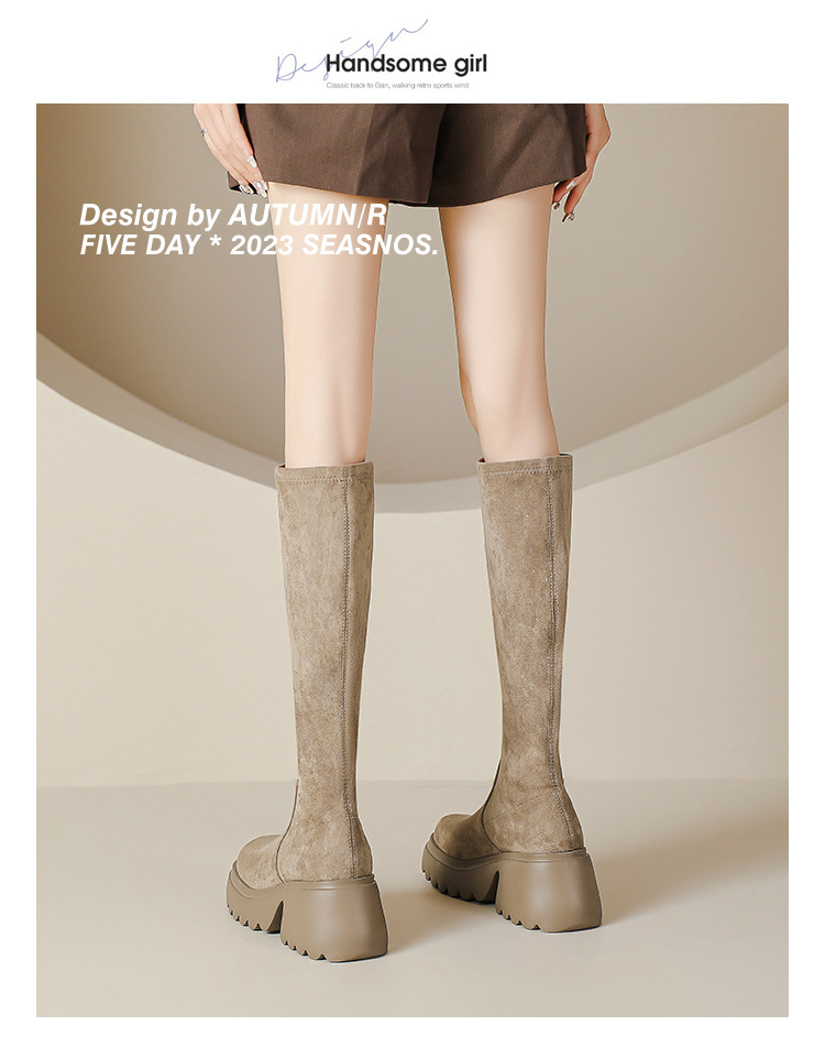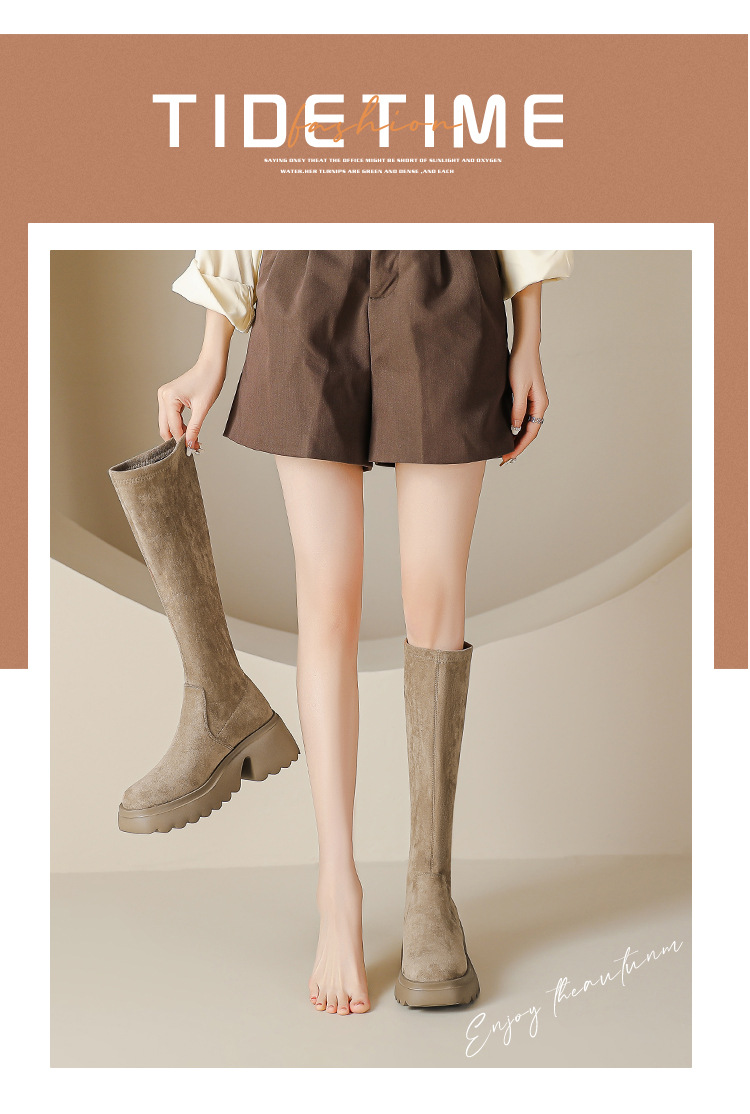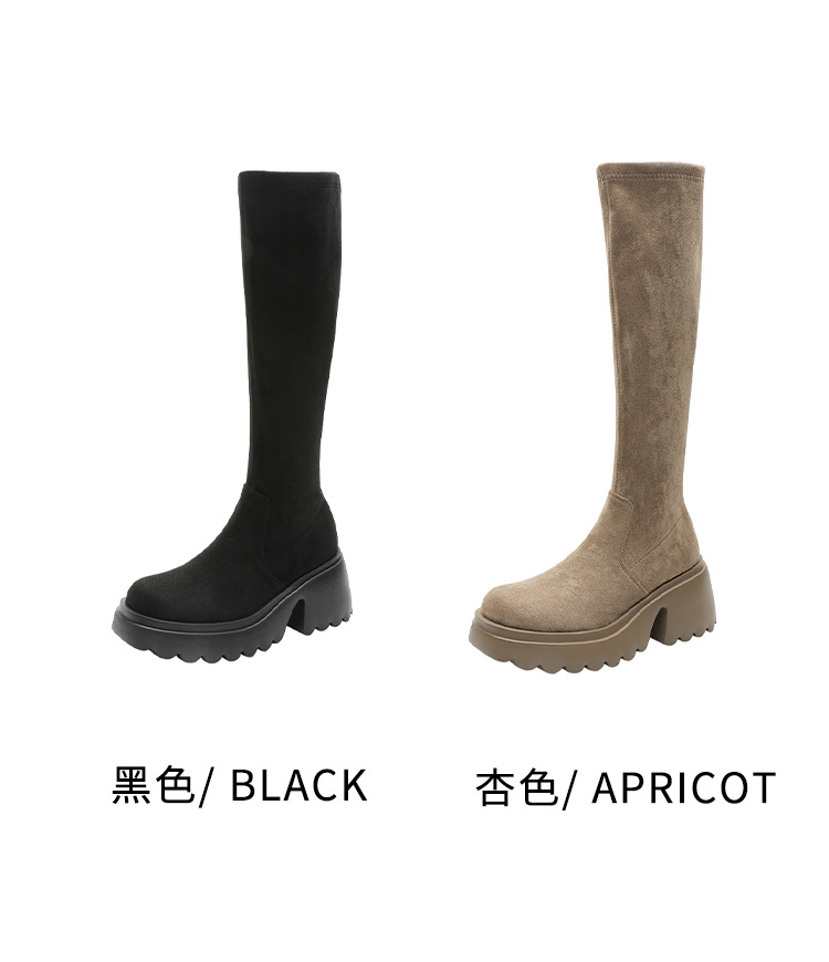 厚底长靴女2023秋冬高筒靴7cm高跟防水台增高弹力及膝松糕底靴子