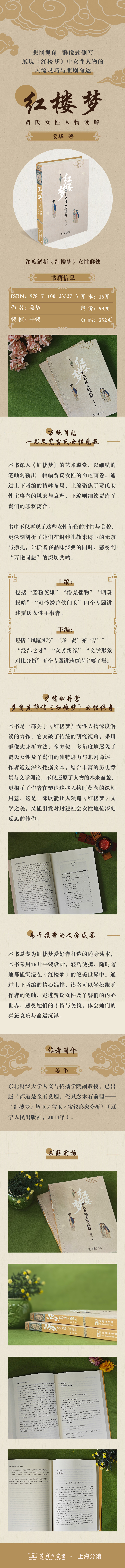 《红楼梦》本身即是十二钗的悲剧,一部《红楼梦》,也是封建社会中女性悲剧的样本集合。从《红楼梦》中具有代表性的女性人物出发,了解其性情,思索其命运,有助于管中窥豹式领悟这部经典之作的深刻性与悲剧意义。