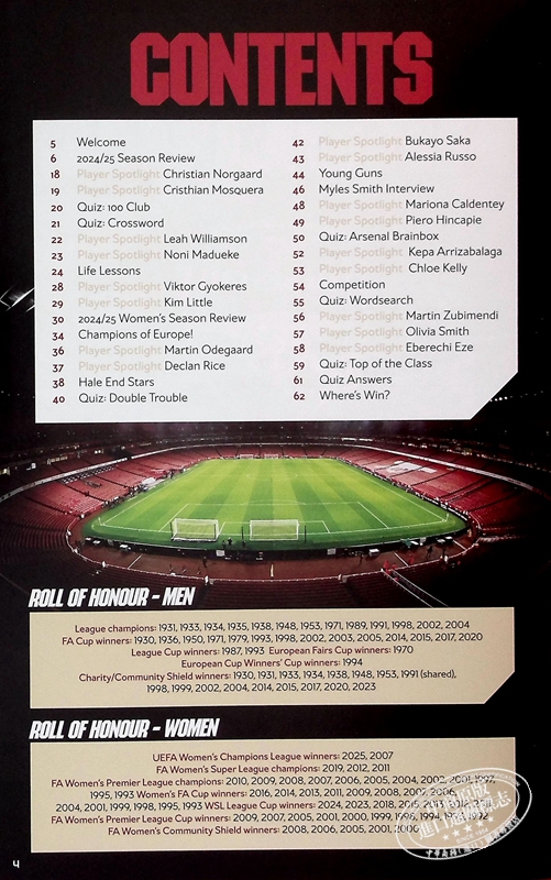 专题报道、谜题、问答、统计数据、人物专访以及精彩摄影作品——所有这些以及更多精彩内容尽在《阿森纳官方年鉴》!