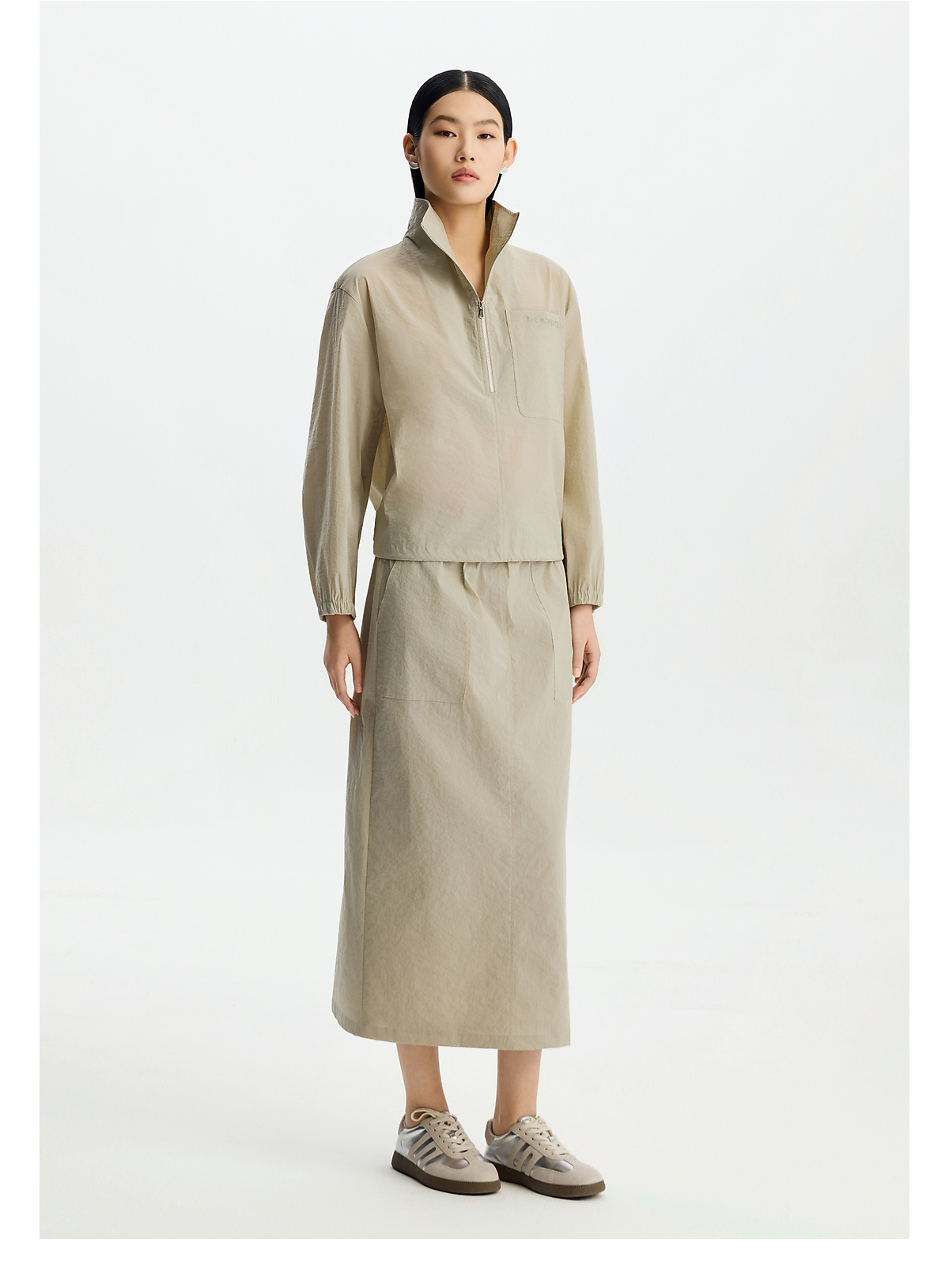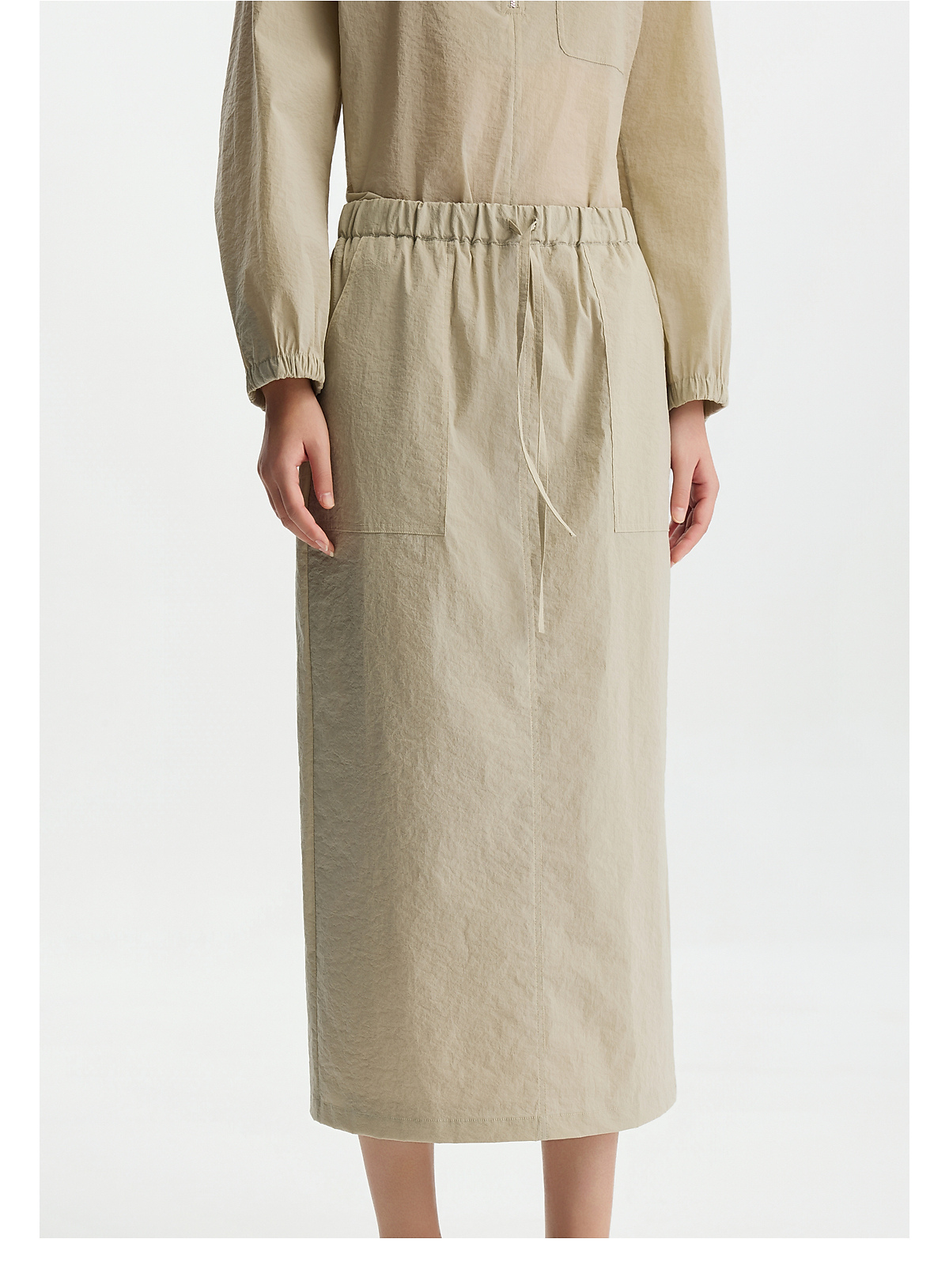 商场同款PURE TOUCH女装26春夏新款高腰半裙抽绳腰休闲直筒过膝裙