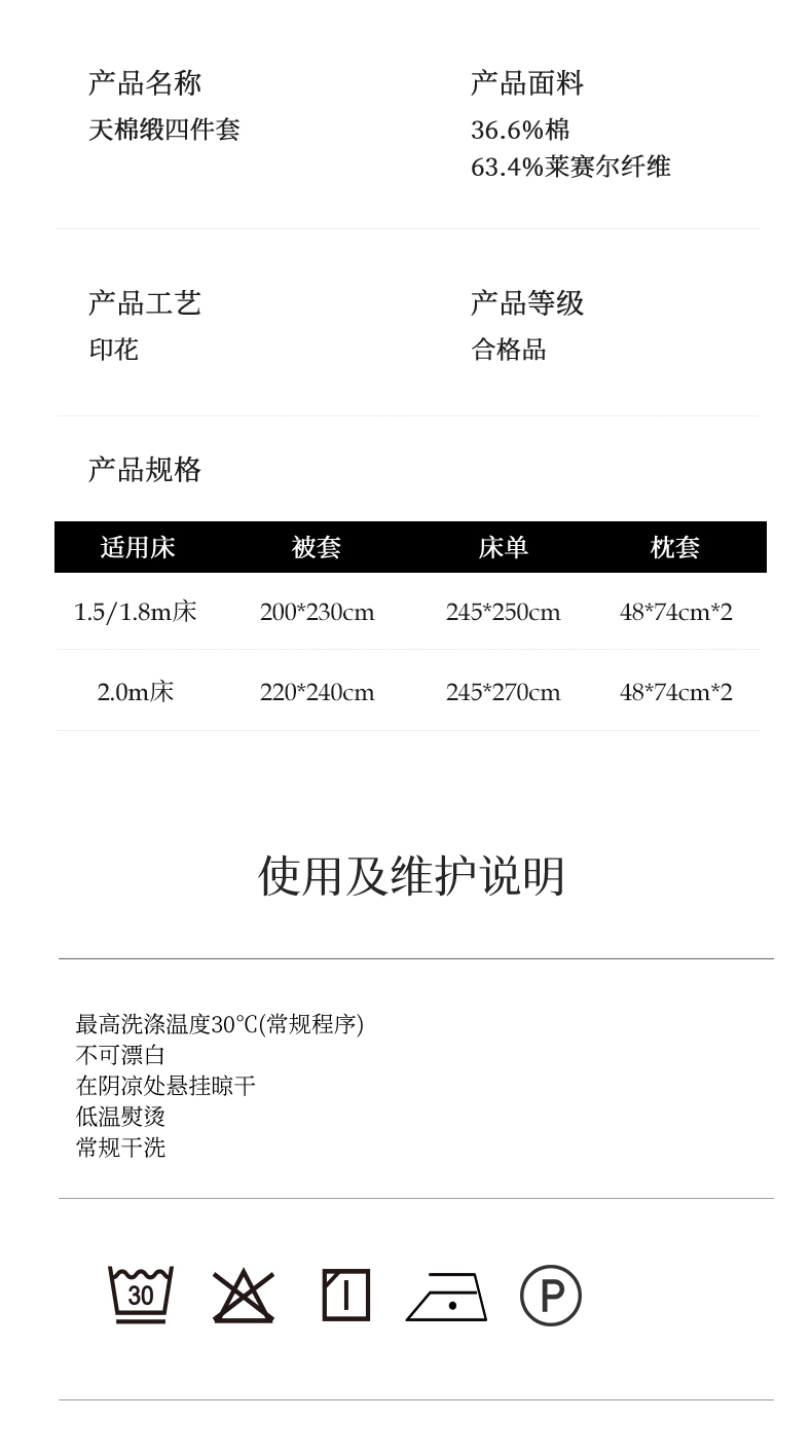 【超柔软Air丝滑】【春夏门店明星爆款】天棉缎四件套 进口莱赛尔天丝棉数码印花套件(赠送礼盒包装)