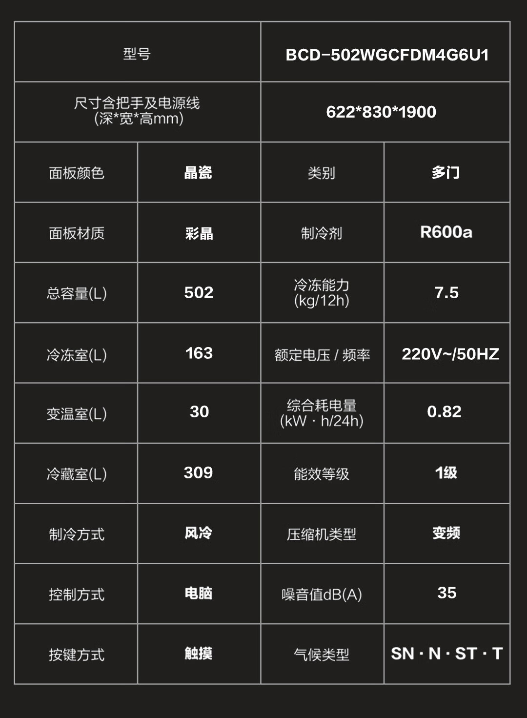 卡萨帝(Casarte)冰箱 BCD-502WGCFDM4G6U1