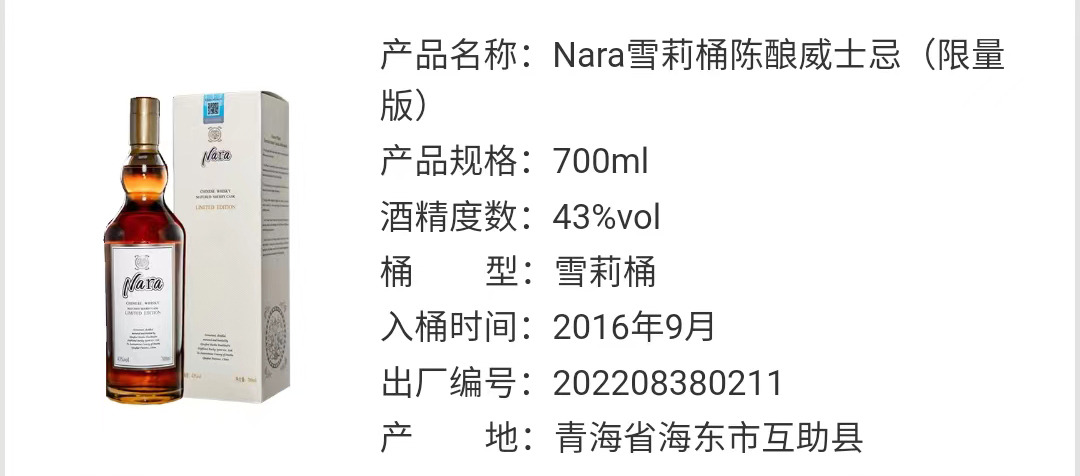 Nara雪莉桶陈酿威士忌(限量版)中国威士忌