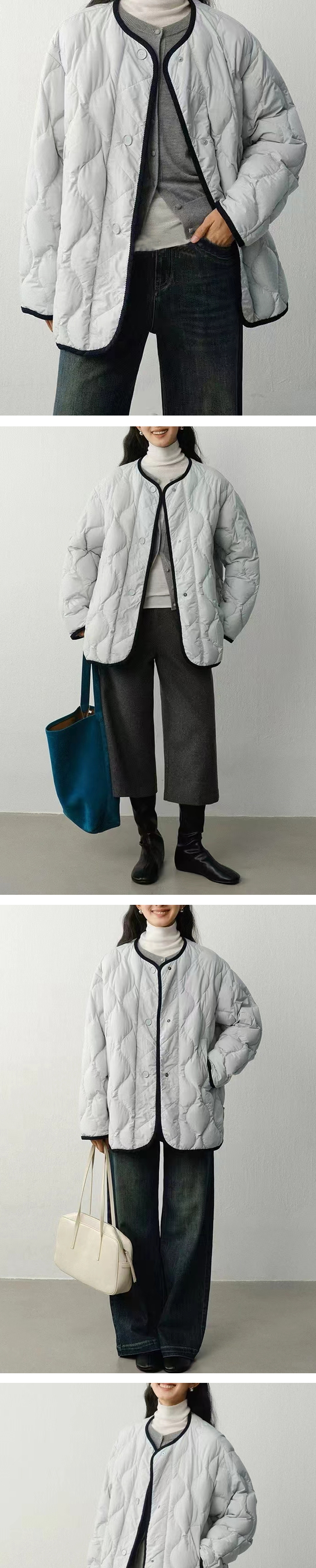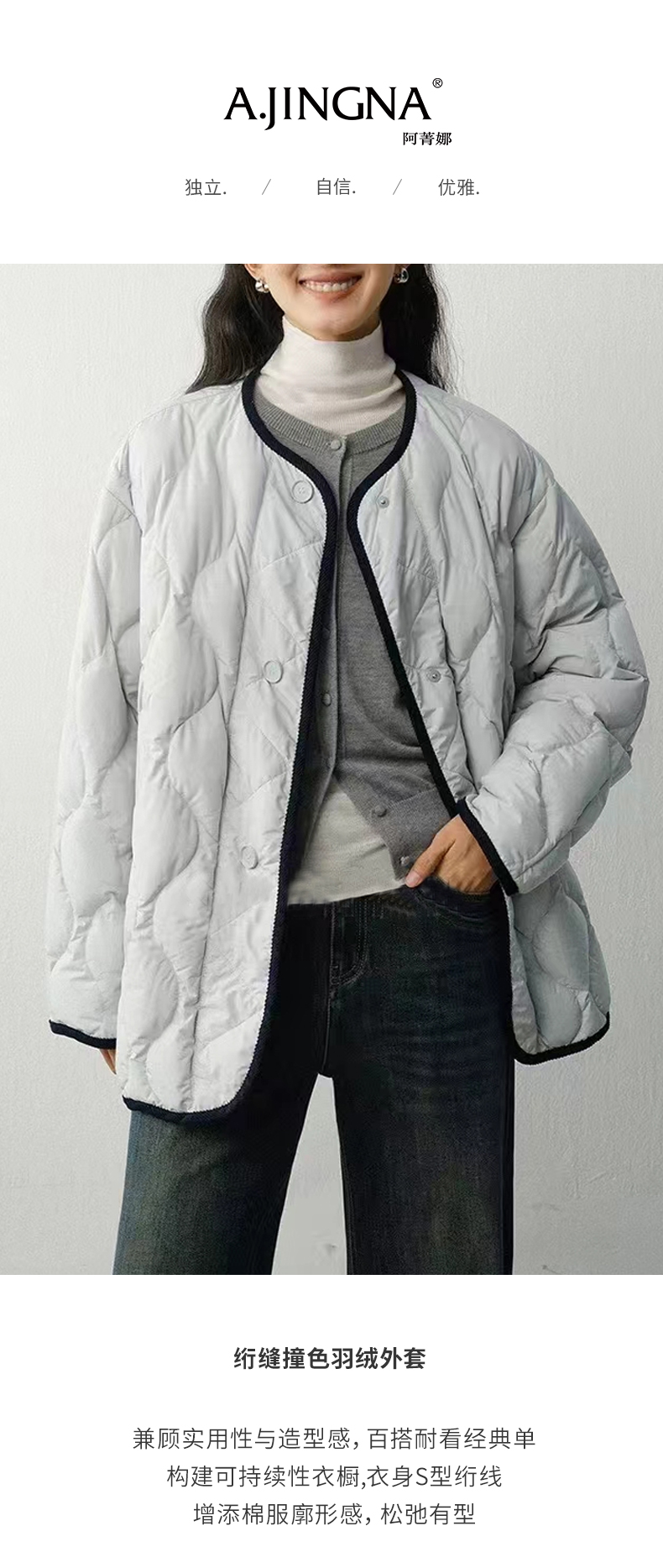 【绗缝撞色】阿菁娜冬季新款绗缝撞色羽绒服S型綗线立体廓形松弛感通勤外套F30D216033