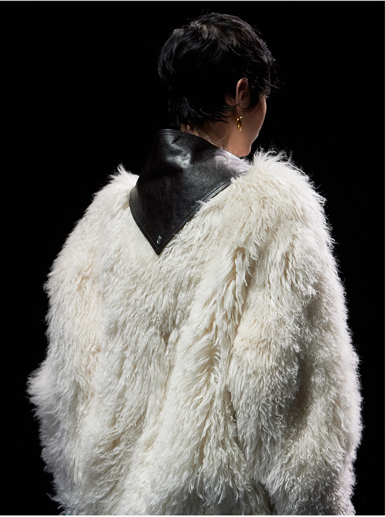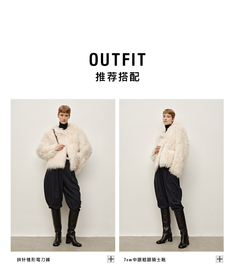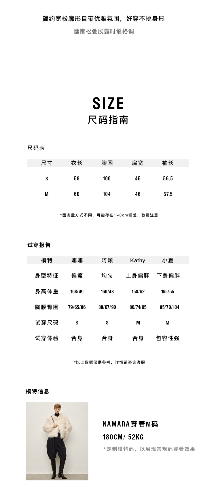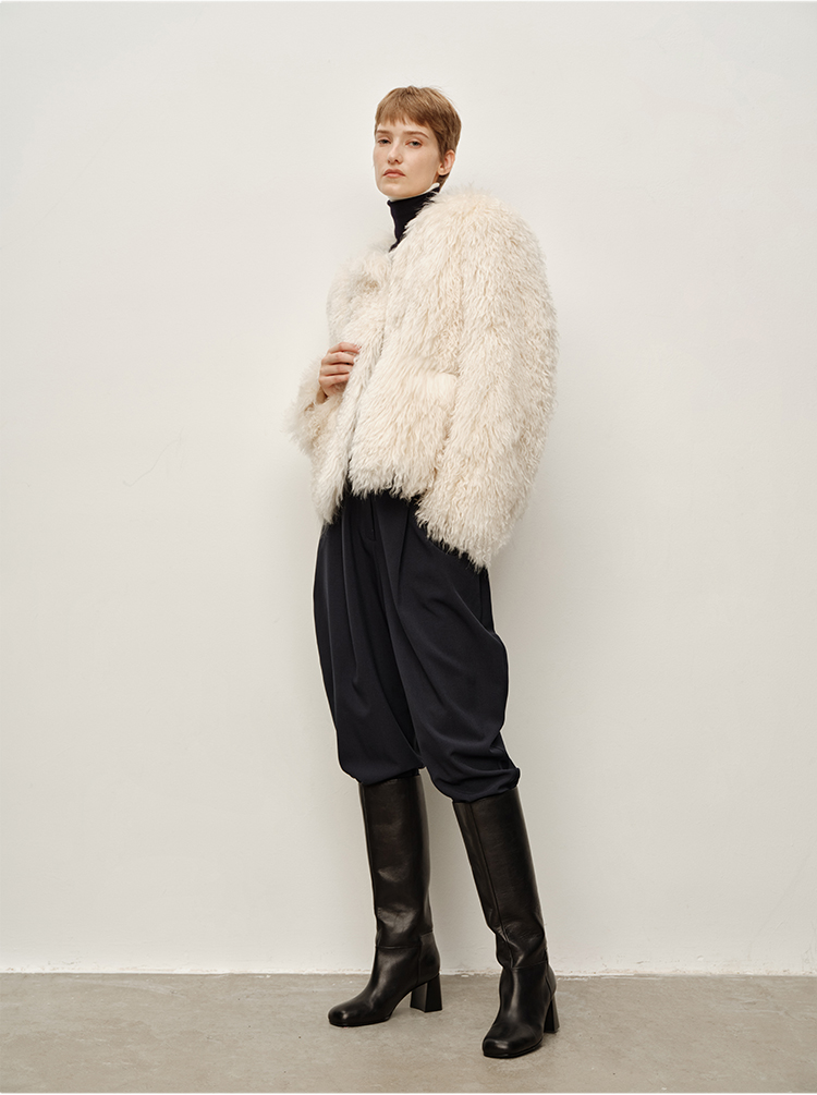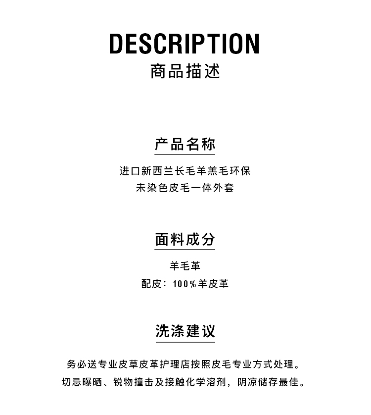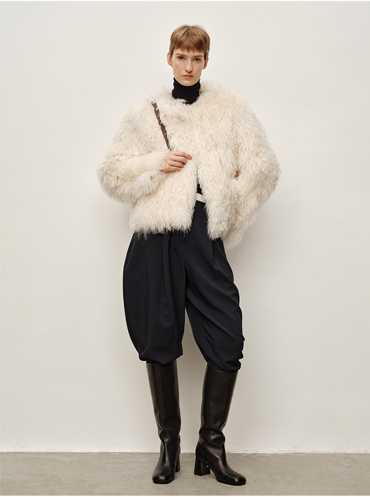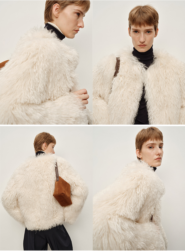 HIDEMI 进口新西兰长毛羊羔毛环保未染色皮毛一体外套 自然白