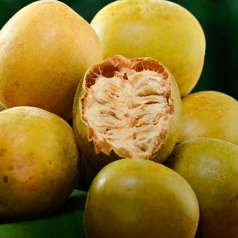 罗汉果外形黄润,光泽度好,肉多籽少,果肉纤维细,香甜味纯正,是天然的甜味剂,不含热量,糖尿病、肥胖的不能吃糖的朋友,可以用罗汉果来替代饮料