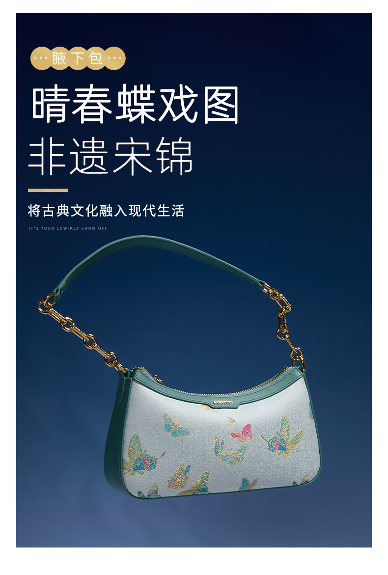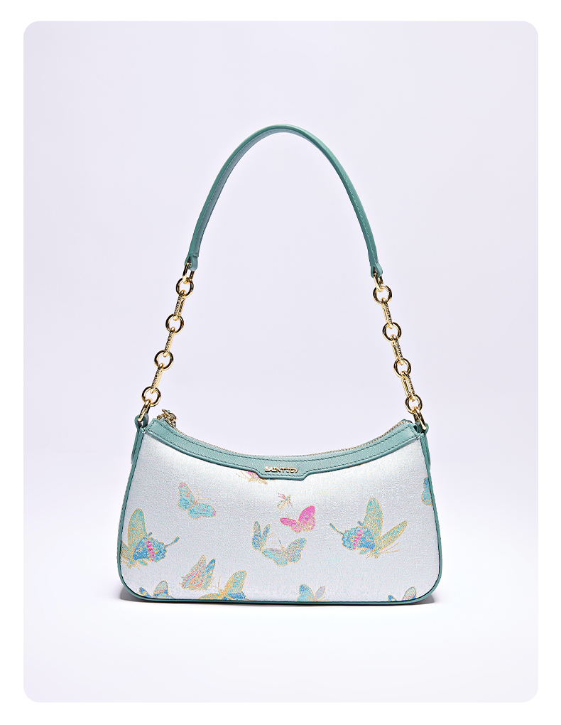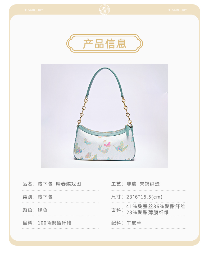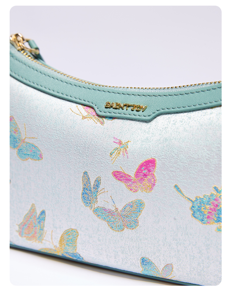 SAINTJOY/上久楷 新中式宋锦女士拎包腋下包晴春蝶戏 BWS25A0502