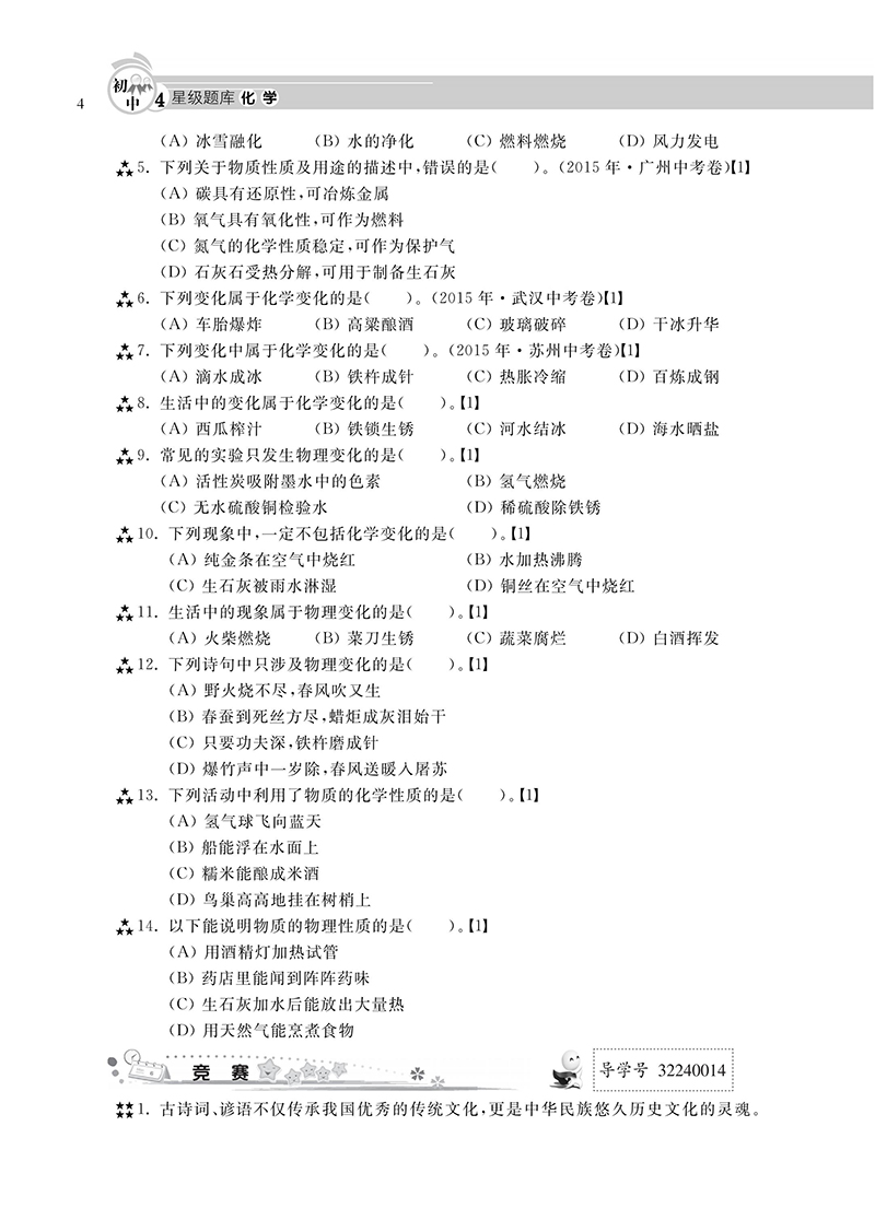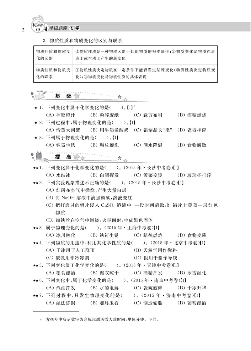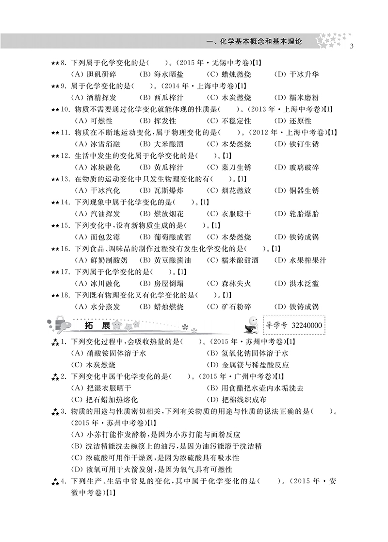 初中四星级题库 化学 附赠答案详解及贴心错题本 星级题库 教辅中的常春藤 上海科技教育出版社