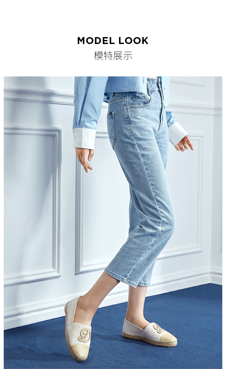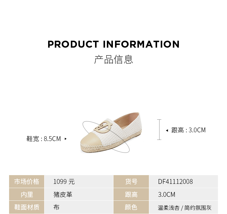 Dfuse迪芙斯2024春季新款呢布手工复古平底渔夫鞋单鞋DF41112008