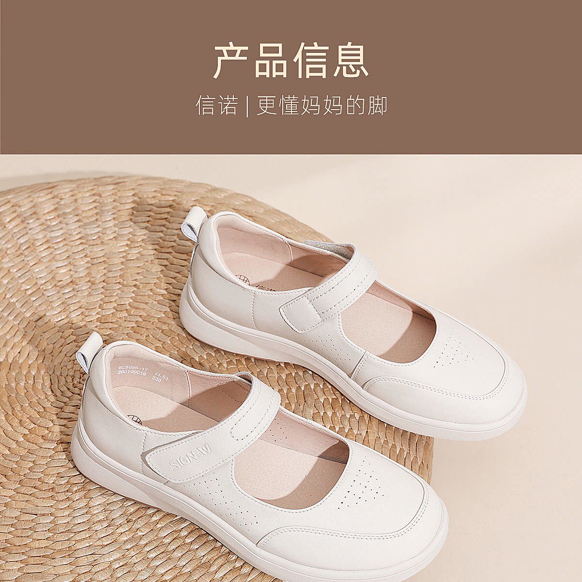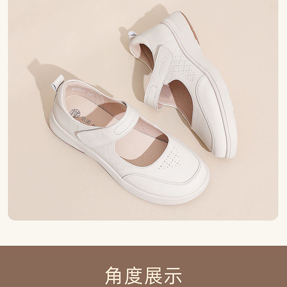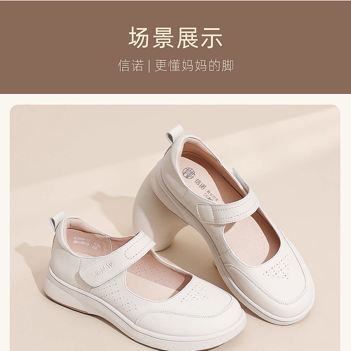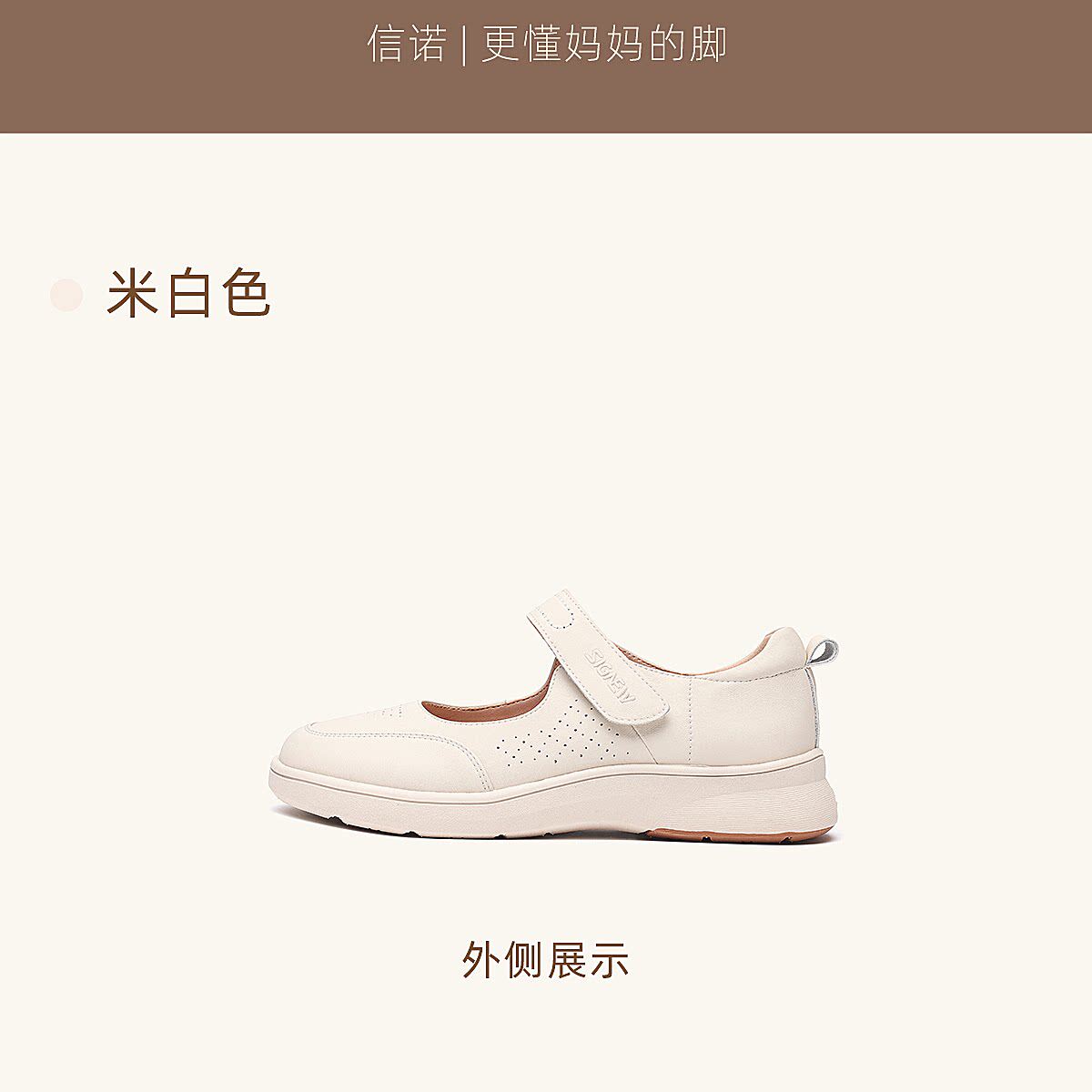 信诺妈妈鞋平底软底舒适不累脚单鞋中老年休闲皮鞋女2026春季新款6C5096-1T