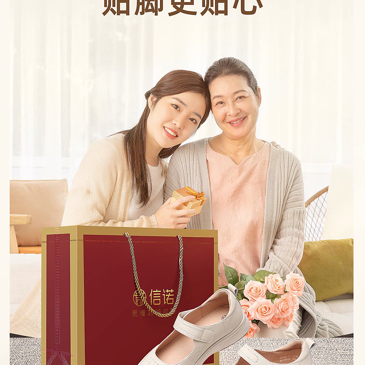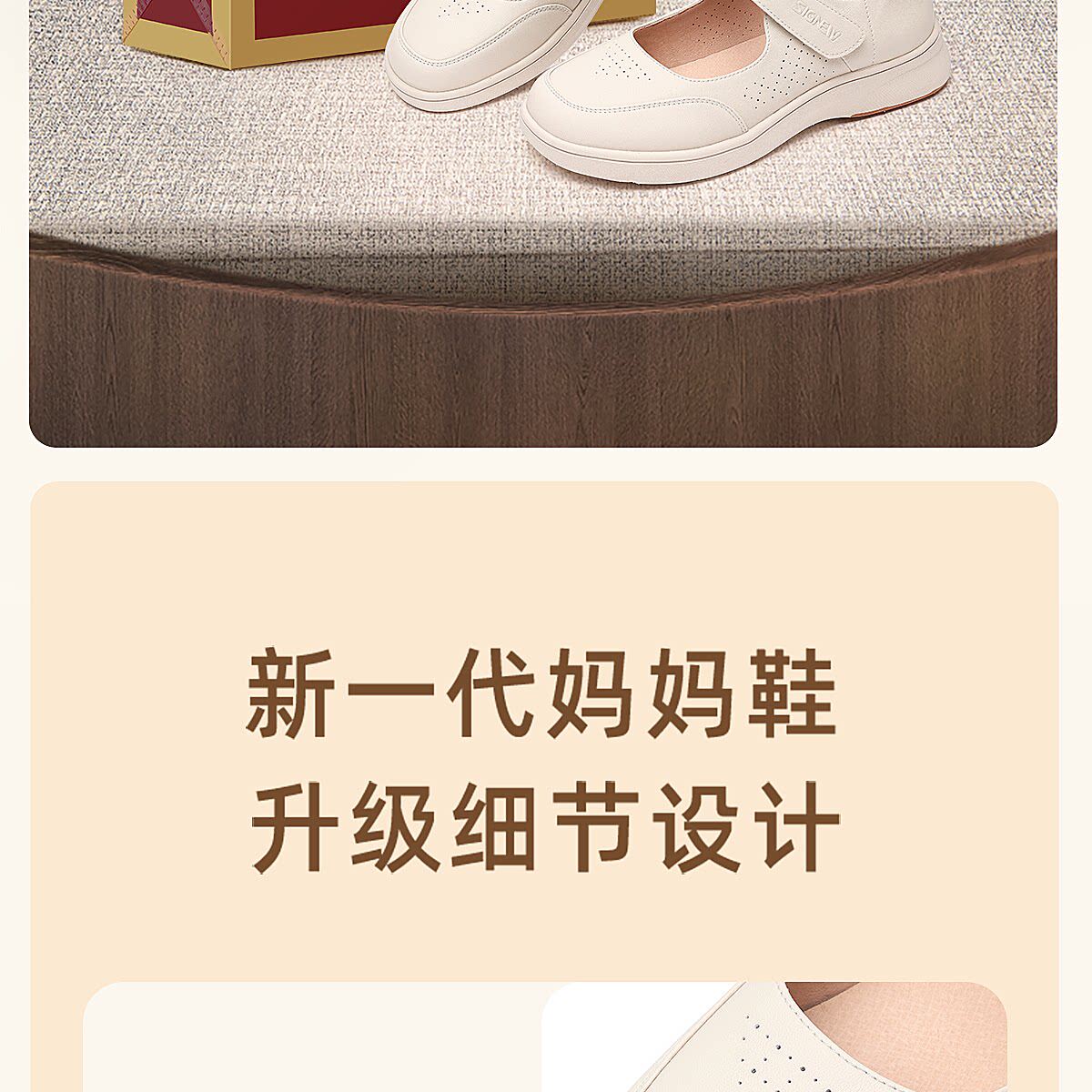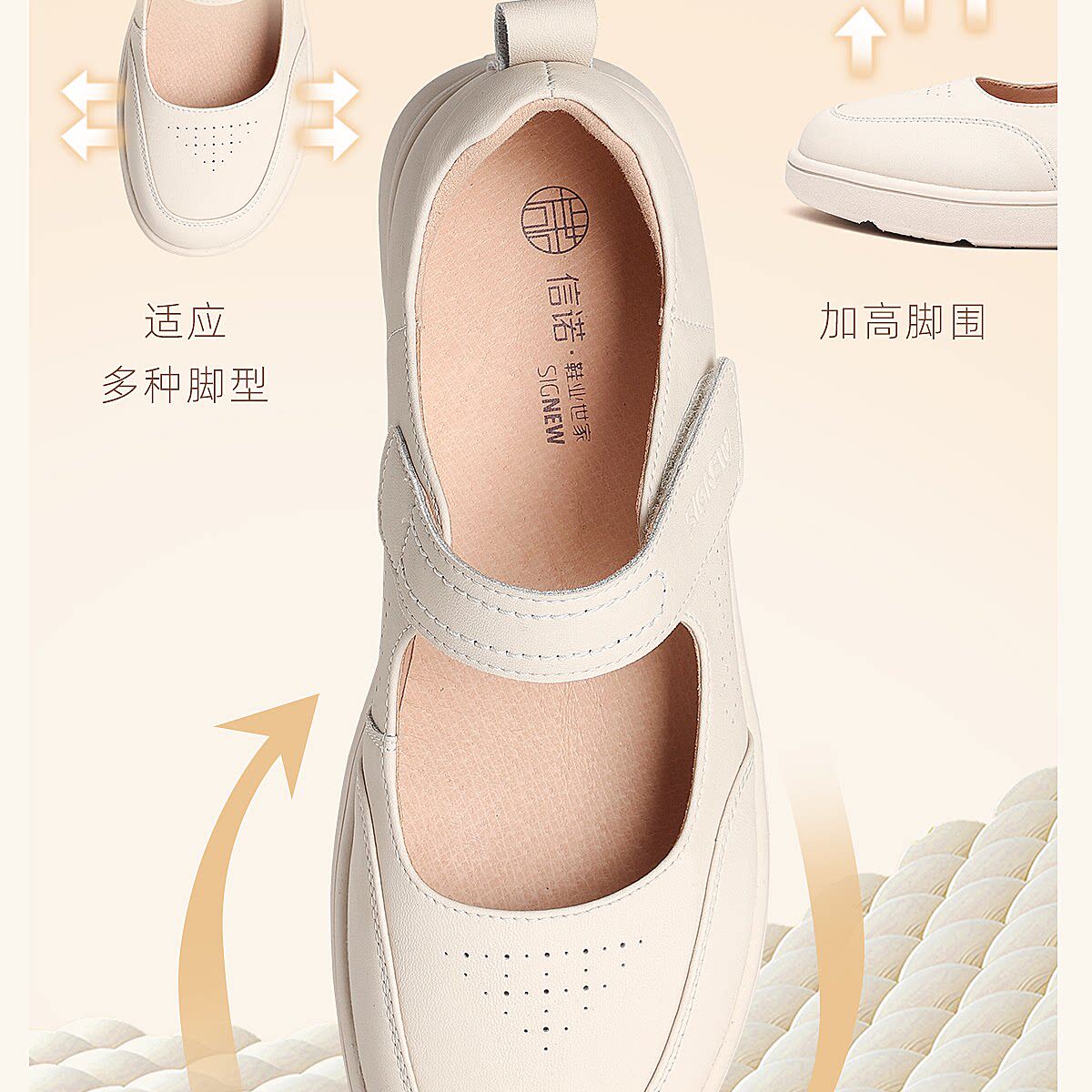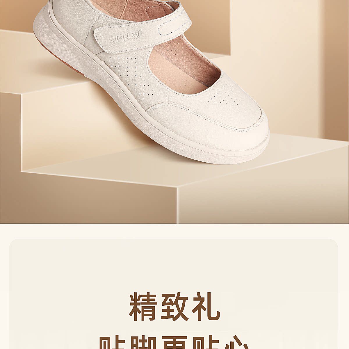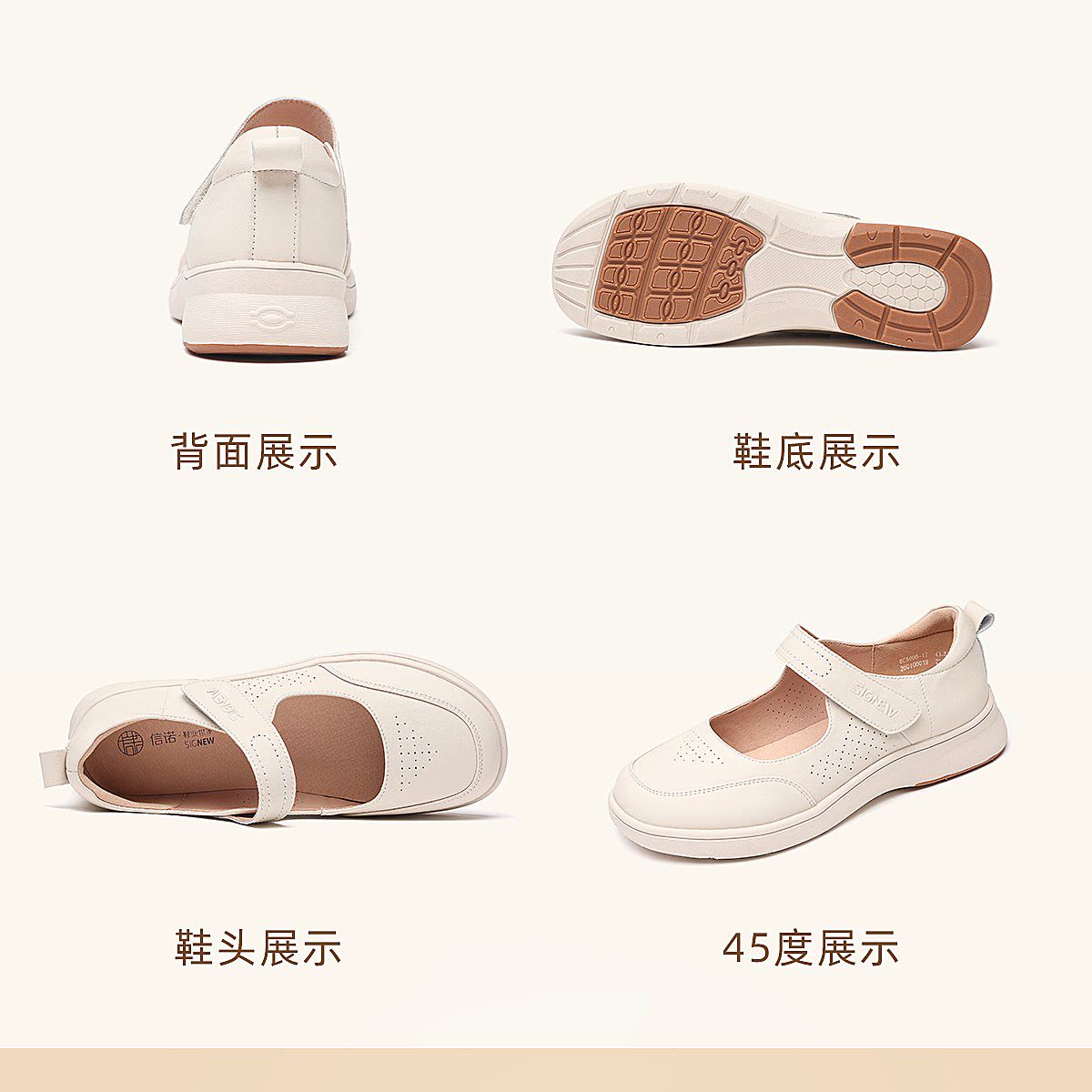 信诺妈妈鞋平底软底舒适不累脚单鞋中老年休闲皮鞋女2026春季新款6C5096-1T