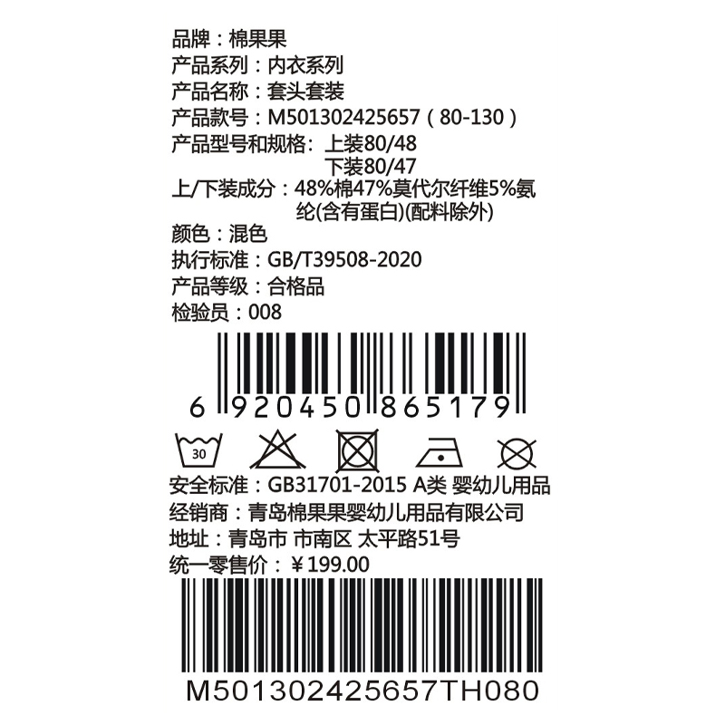 棉果果冬季新品莫代尔牛奶纤维80-130码柔软顺滑新年套头套装M501302425657