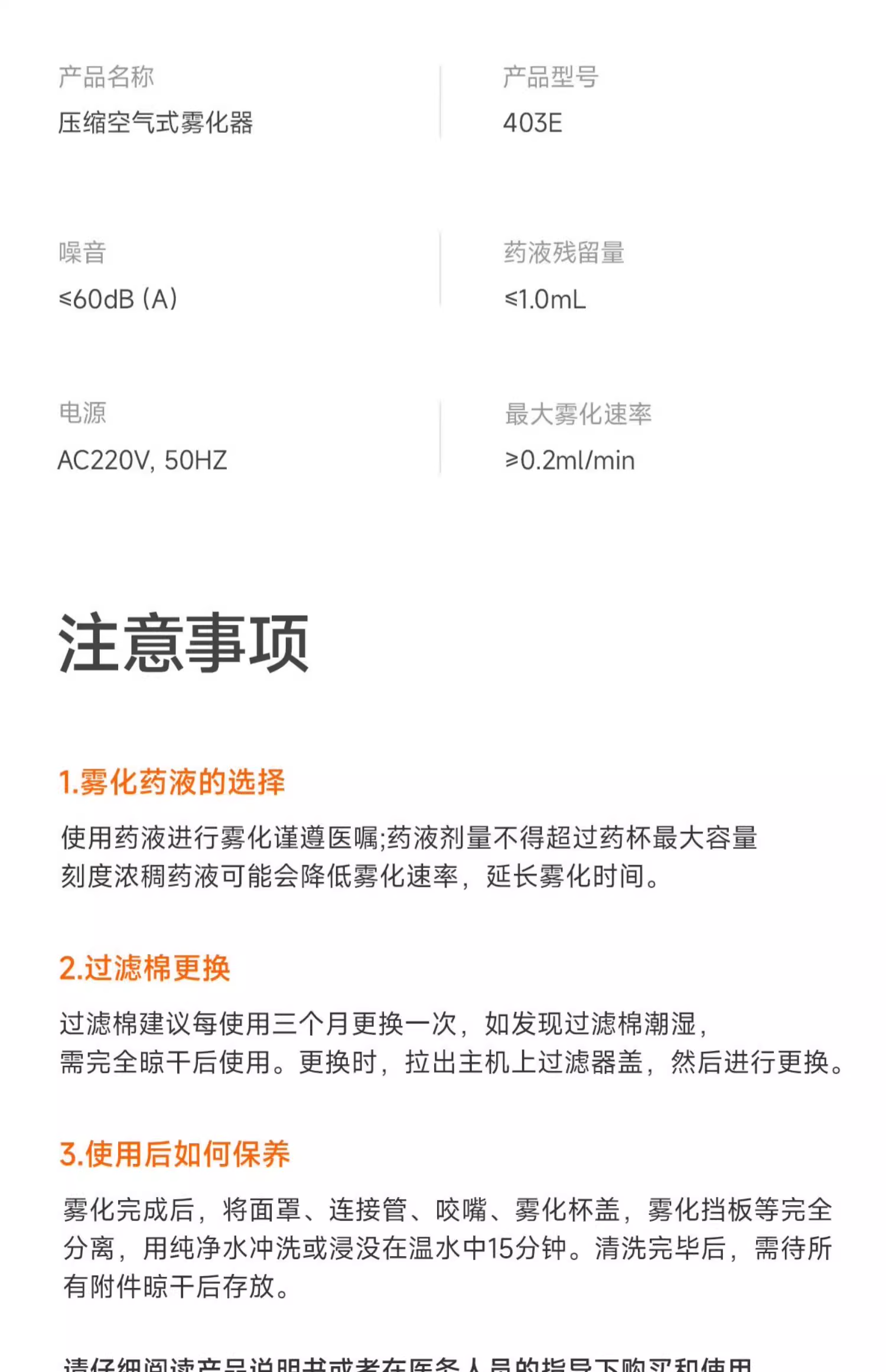 鱼跃雾化机家用儿童家庭用医用压缩空气式喷雾器儿童成人雾化403E