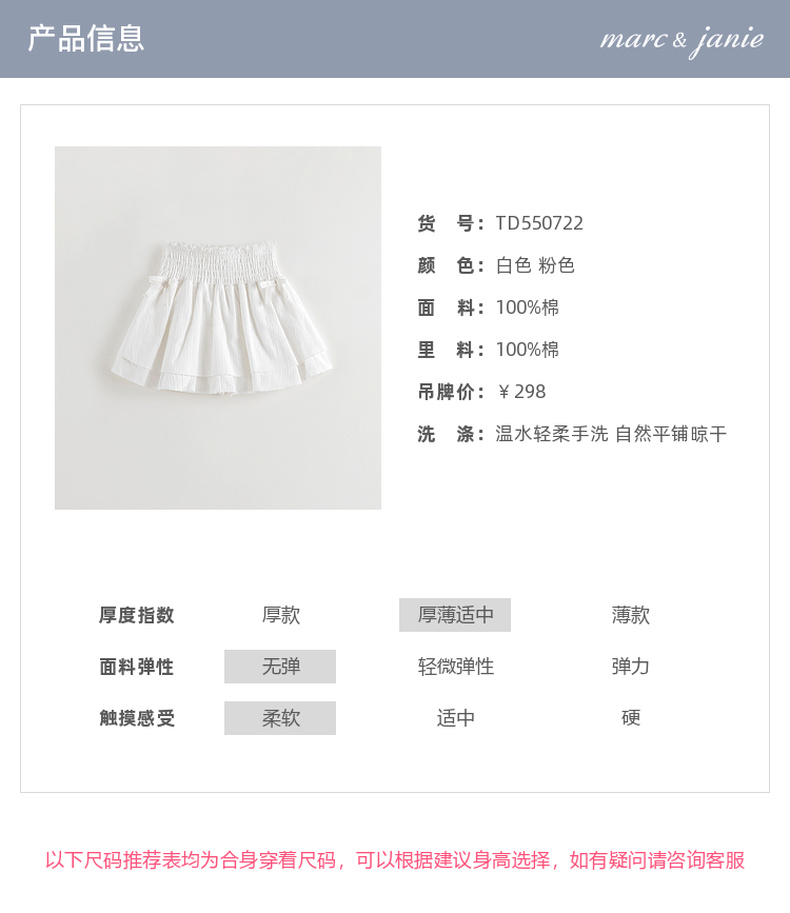 马克珍妮女童甜美芭蕾风蝴蝶结蛋糕裙裤 儿童短裙夏装新款550722