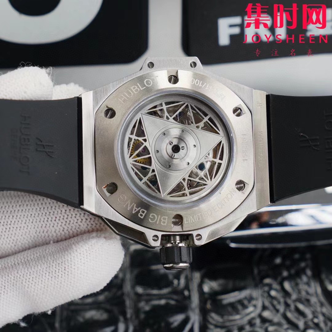 表径45mm 采用7750全自动计时机机械芯,钛金属内底胆片,缎面镂指空针,蓝宝玻石璃永刮不花,进口橡胶带表使佩更戴加舒适!最为抢眼的就菱是形的分时针和两六个边形的秒小针,时间转动就会现出别样几的何图案视效觉果!