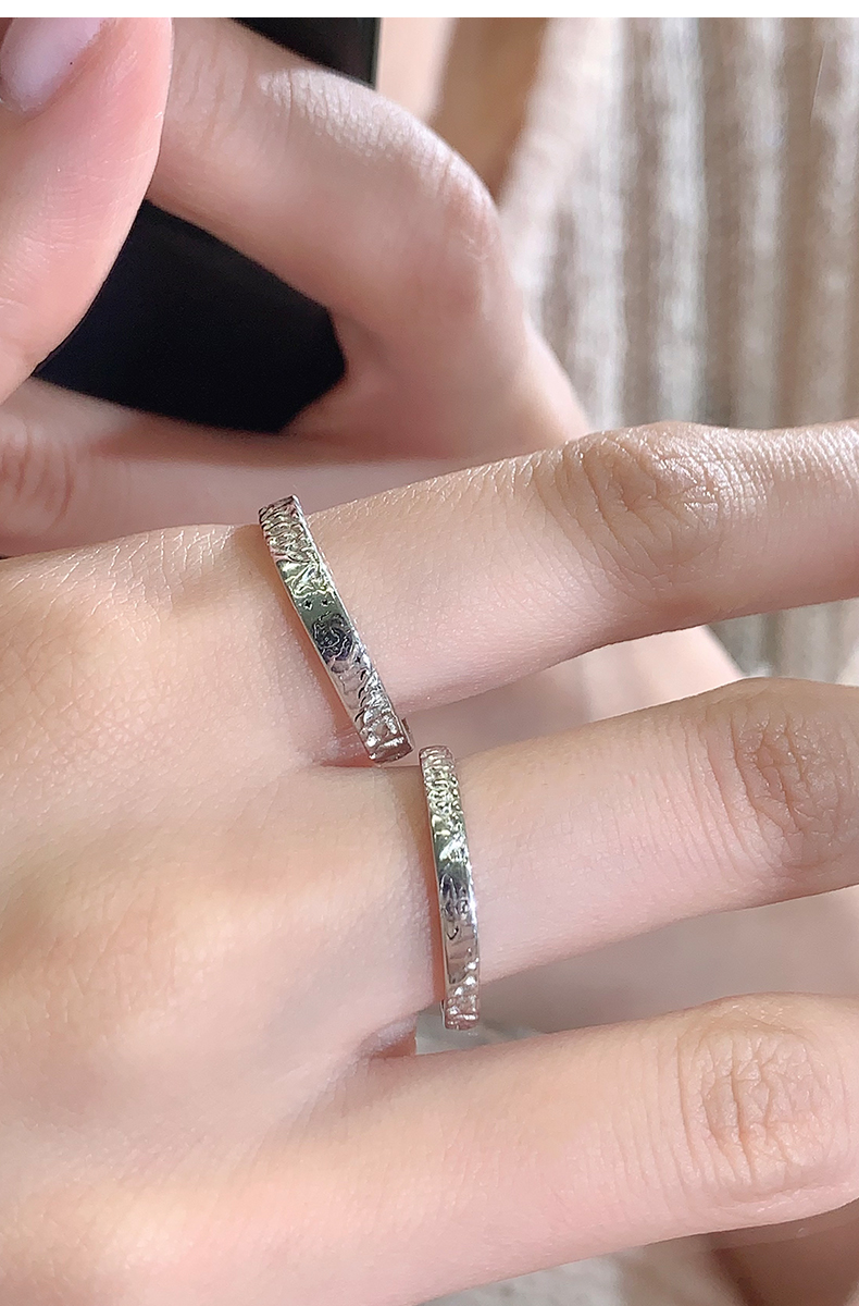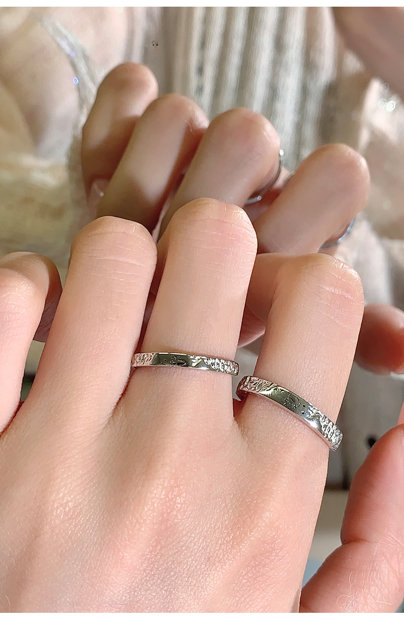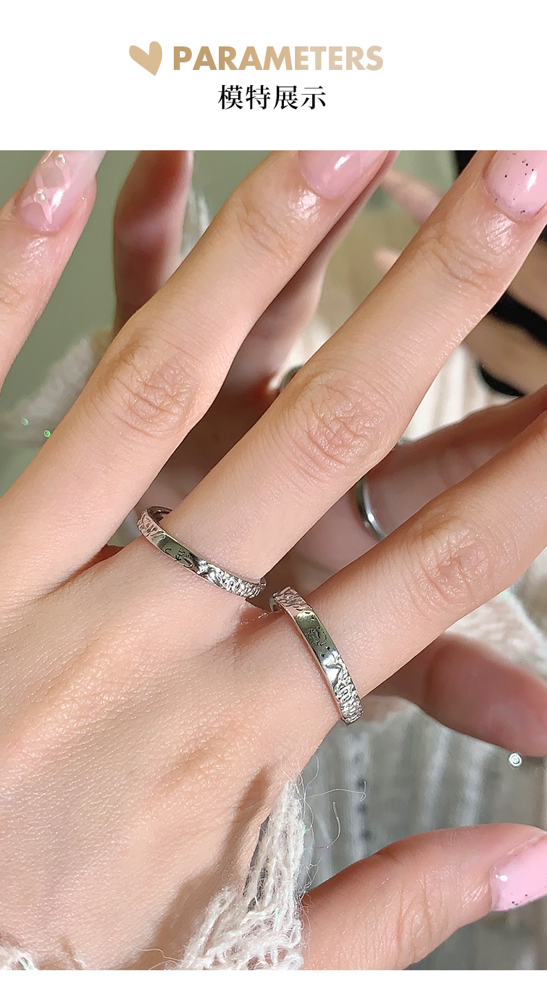 卡蒂罗KADER 甜蜜锁定情侣对戒 新中式甜蚀冰川纹理感钟爱久久素圈可调节一对 好运甜美浪漫时尚百搭