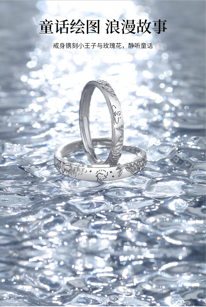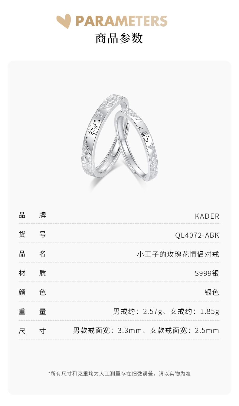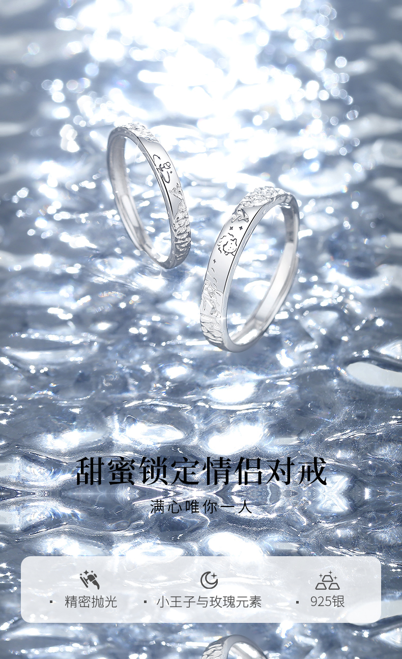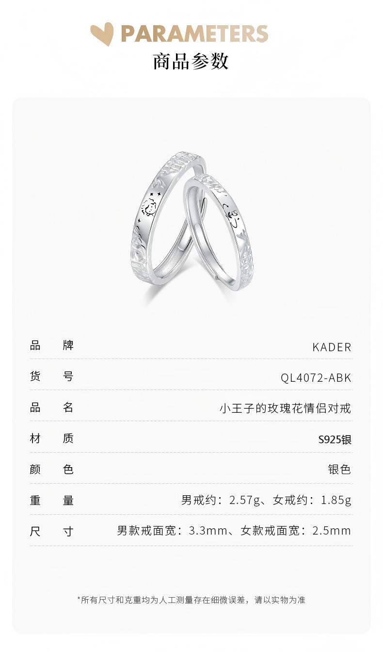 卡蒂罗KADER 甜蜜锁定情侣对戒 新中式甜蚀冰川纹理感钟爱久久素圈可调节一对 好运甜美浪漫时尚百搭