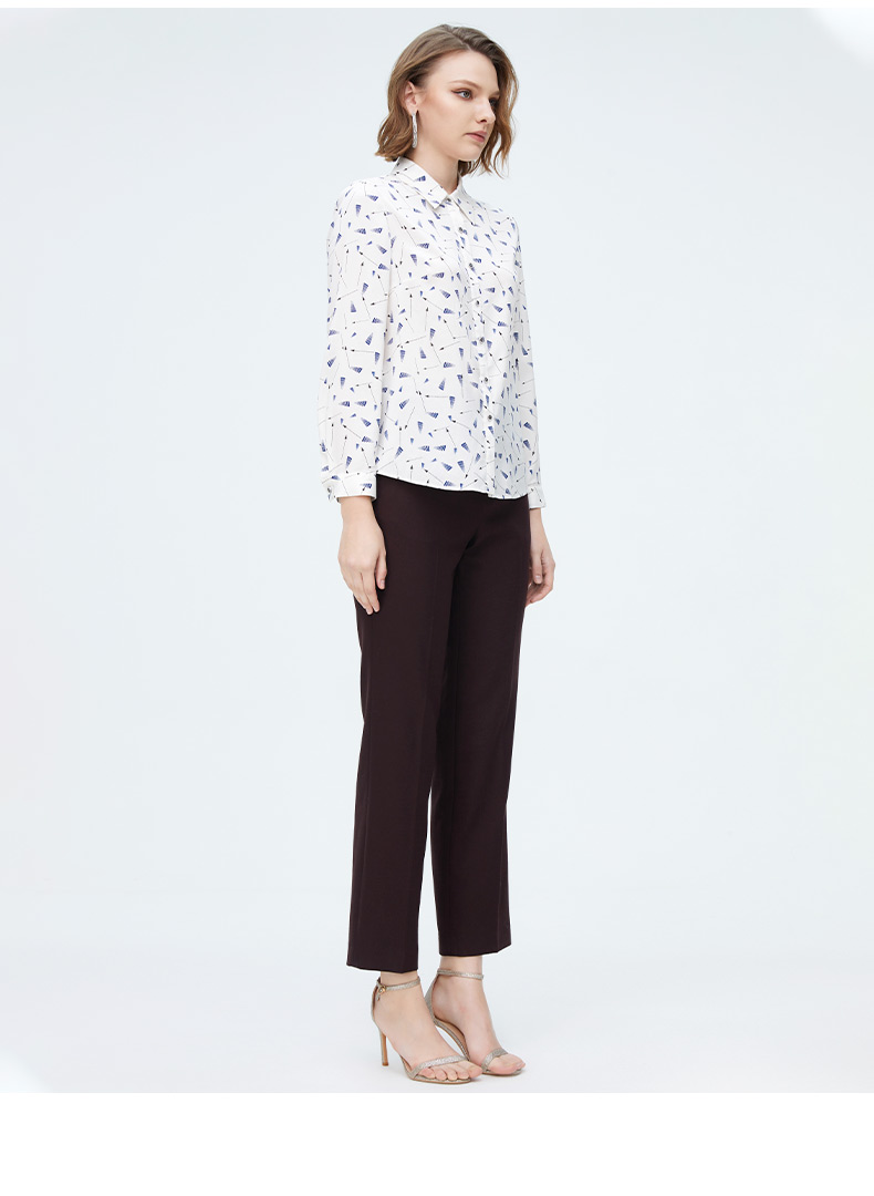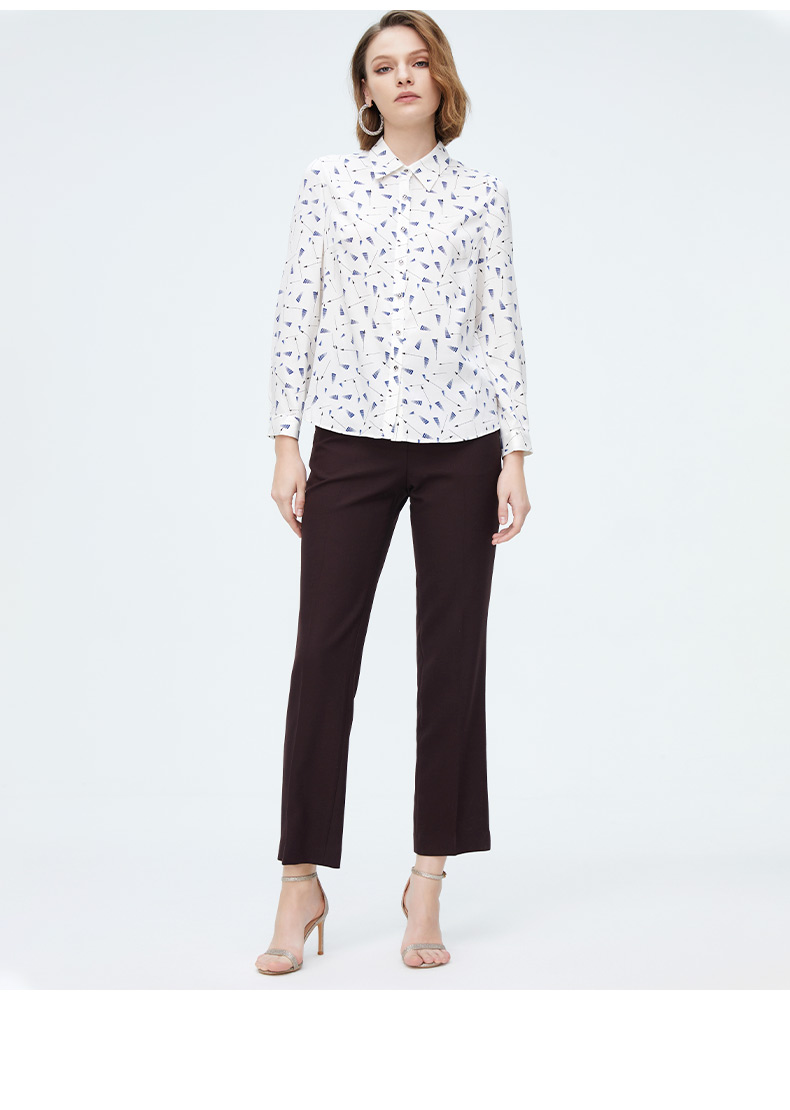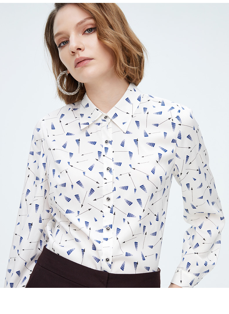 皮尔卡丹女装清新气质淑女修身通勤百搭长袖衬衫P4158B4024W3