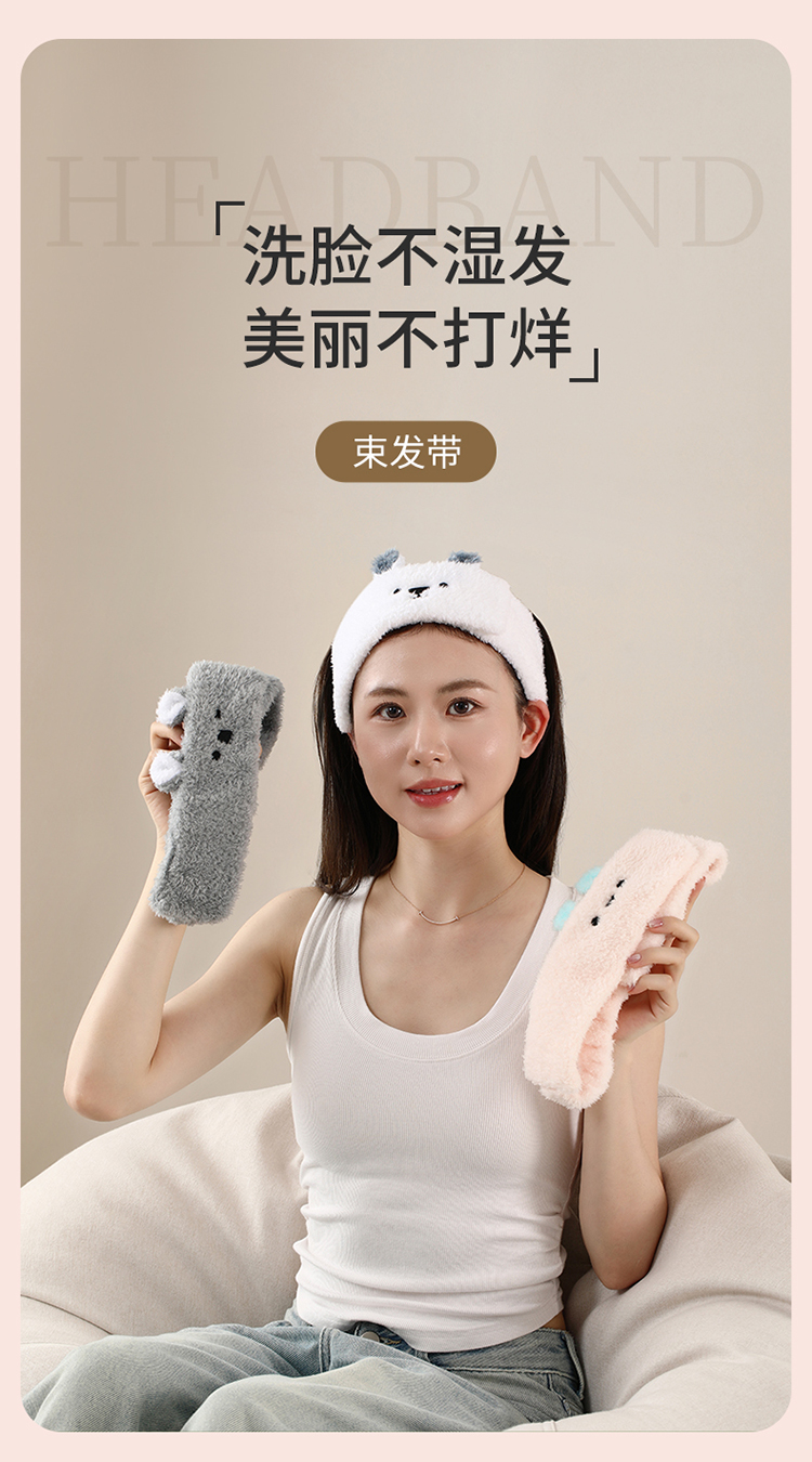 FaSoLa束发带女洗脸专用洗漱防水魔术贴发箍男可爱毛绒敷面膜头箍