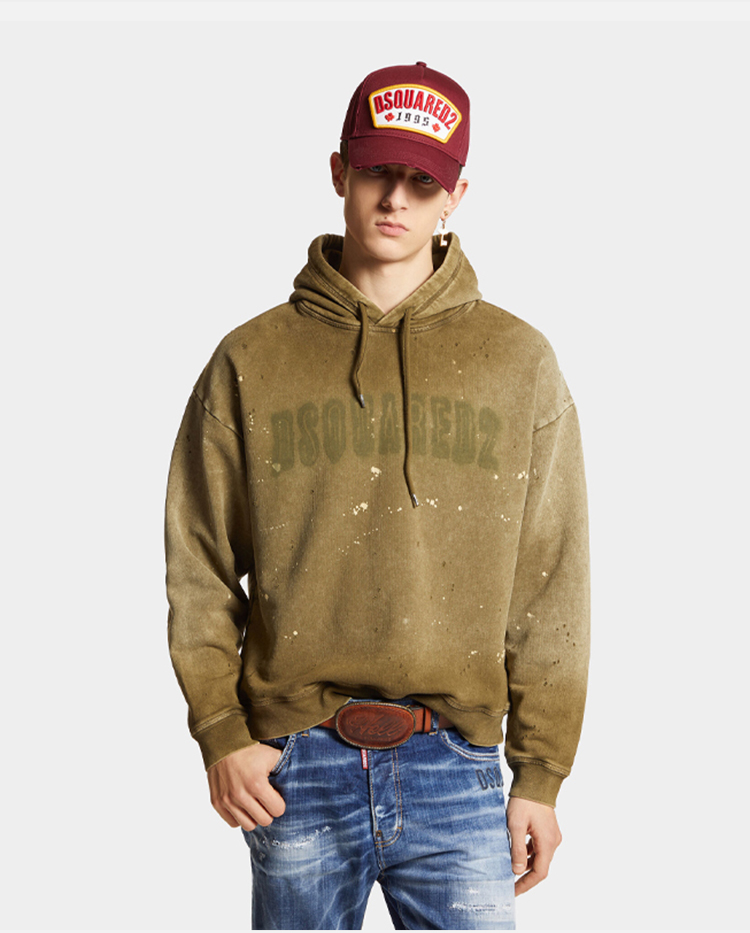 DSQUARED2 男士字母徽标棉质抓绒连帽卫衣 驼色 S74GU0818 S25030 728