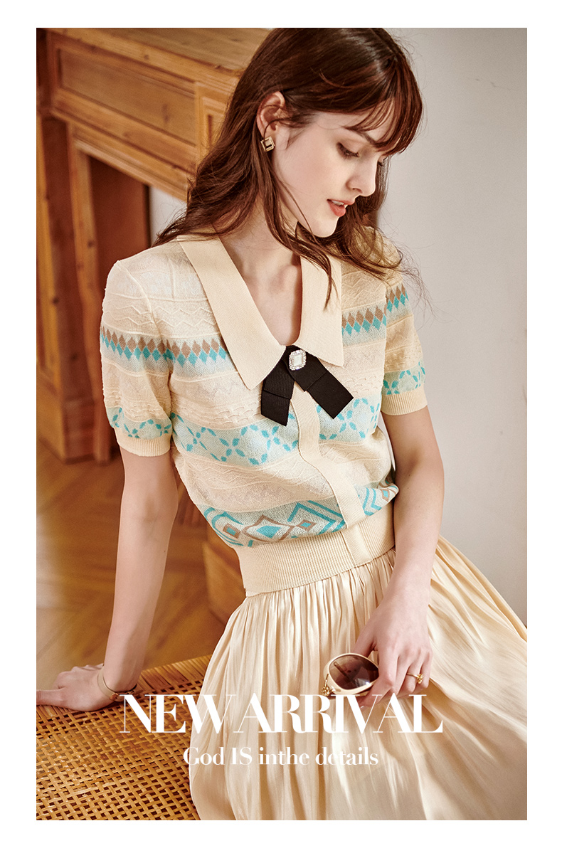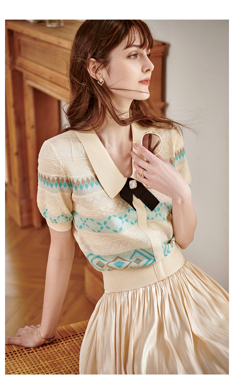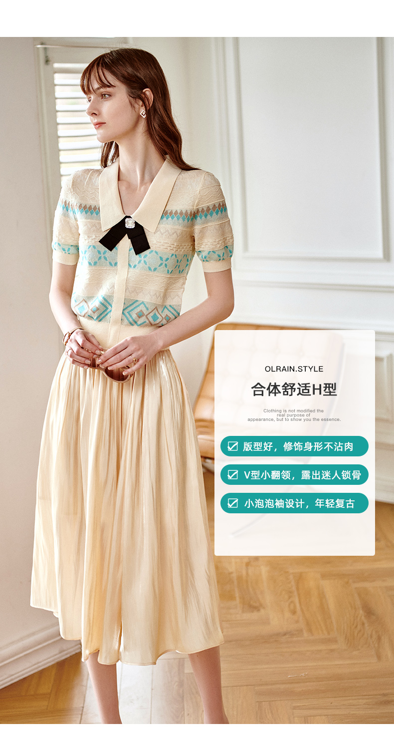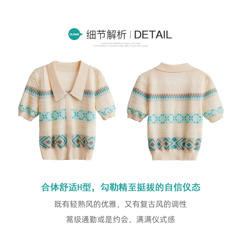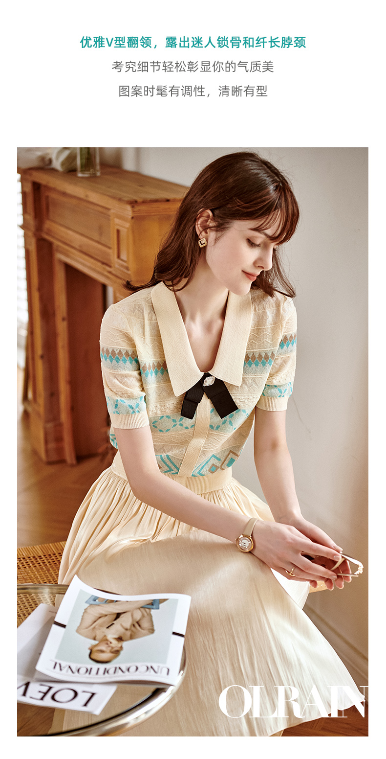 欧芮儿提花毛针织衫女夏2021新款气质优雅通勤宽松短袖薄款上衣女