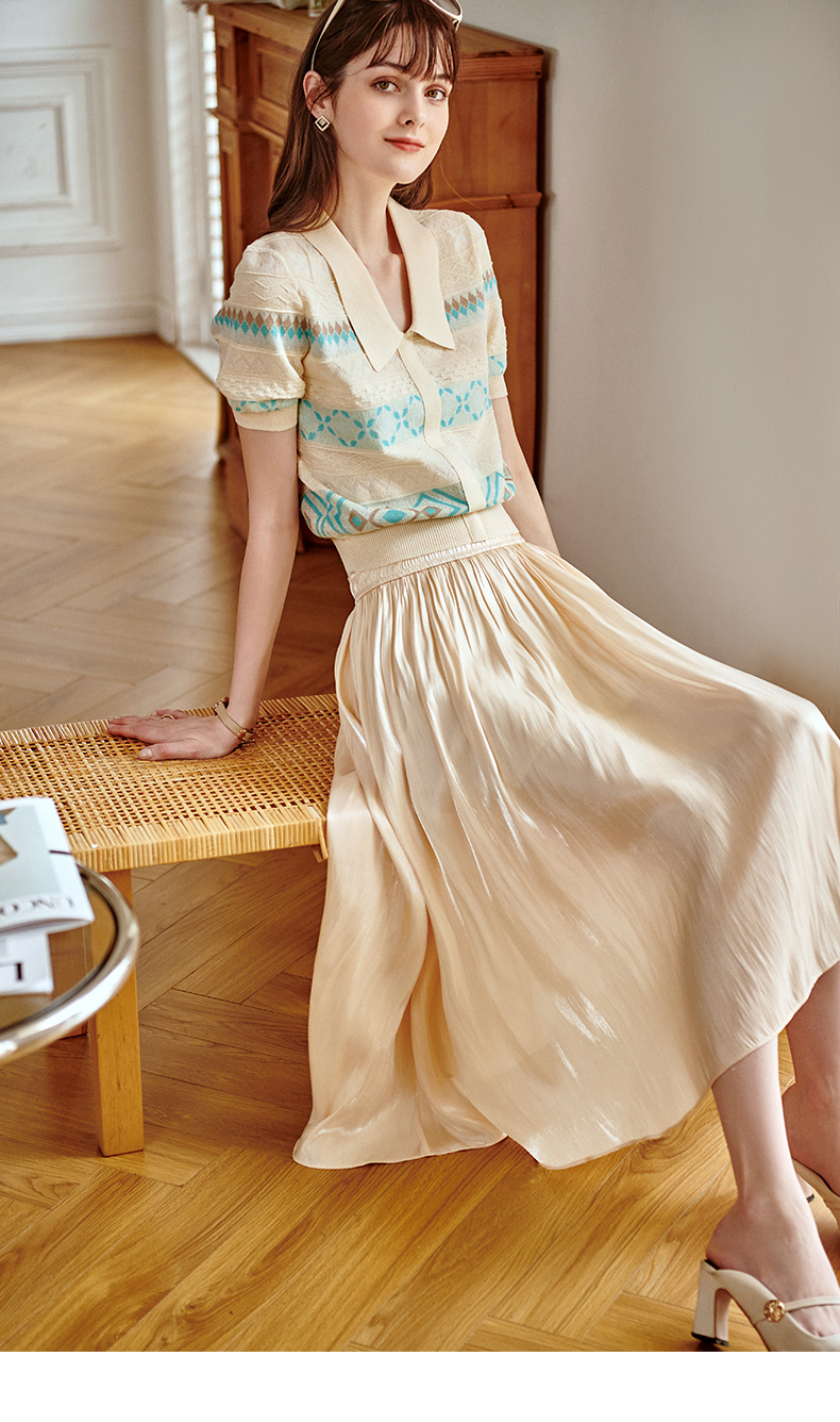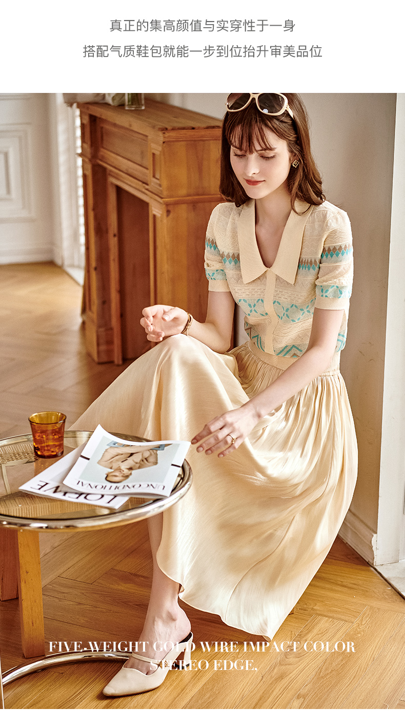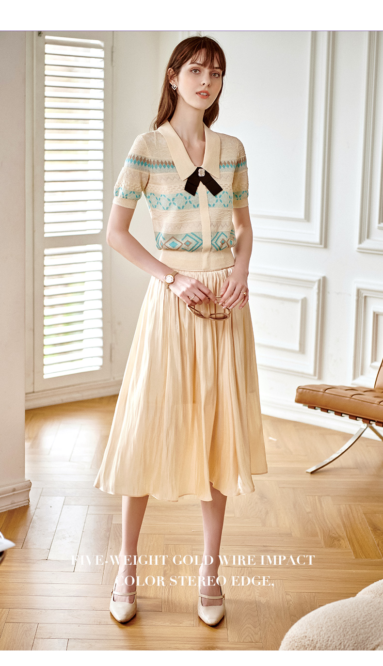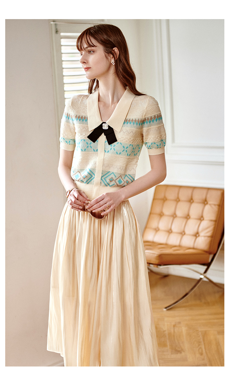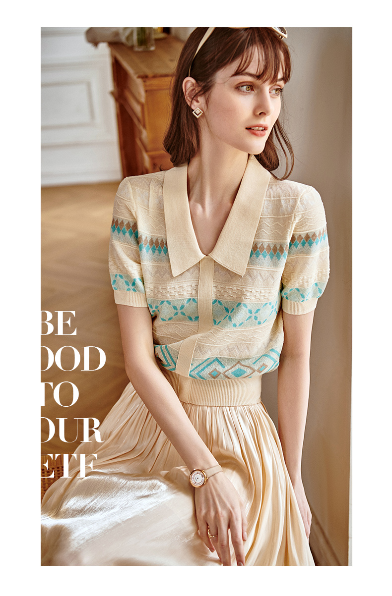 欧芮儿提花毛针织衫女夏2021新款气质优雅通勤宽松短袖薄款上衣女