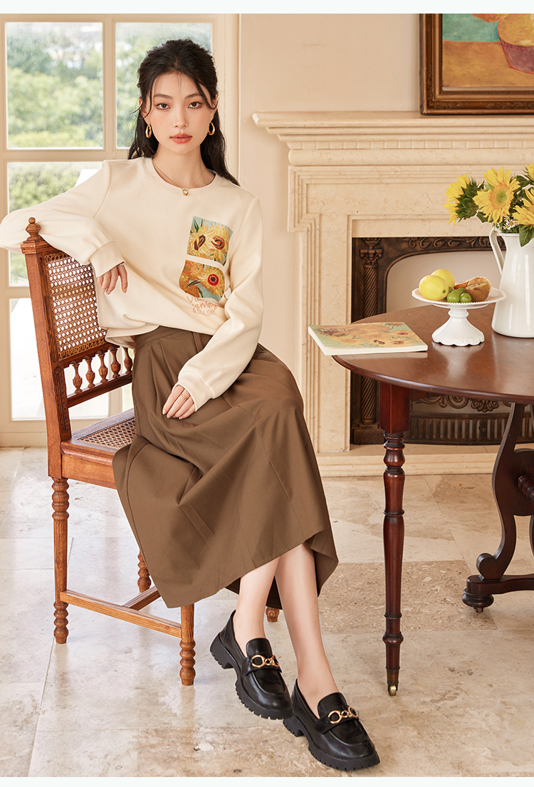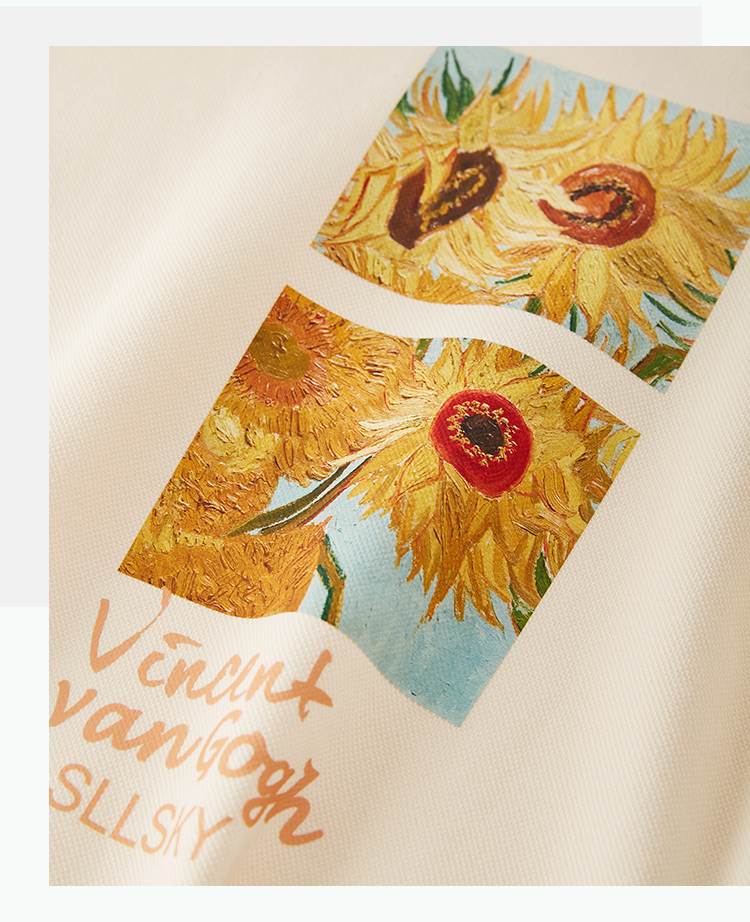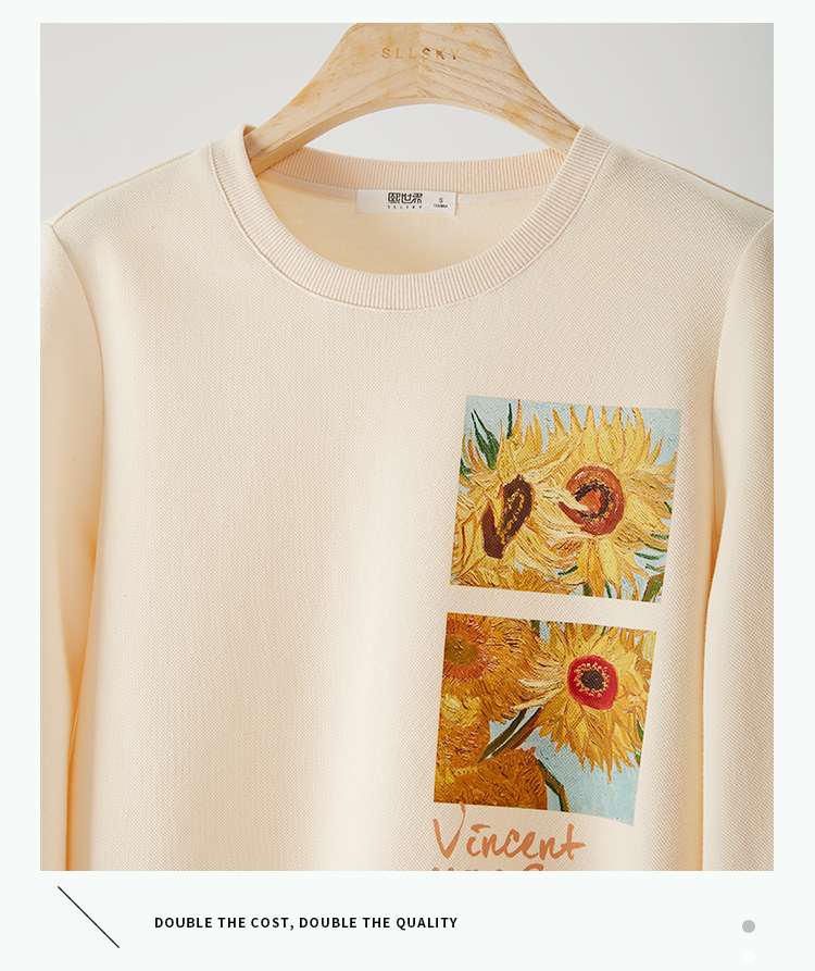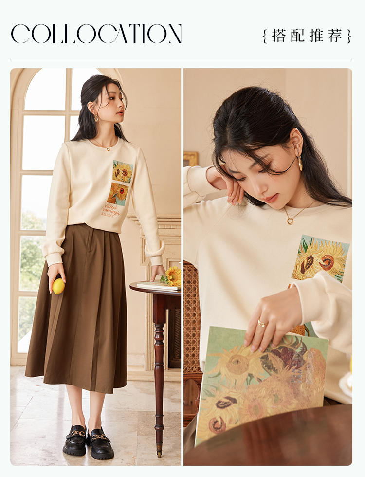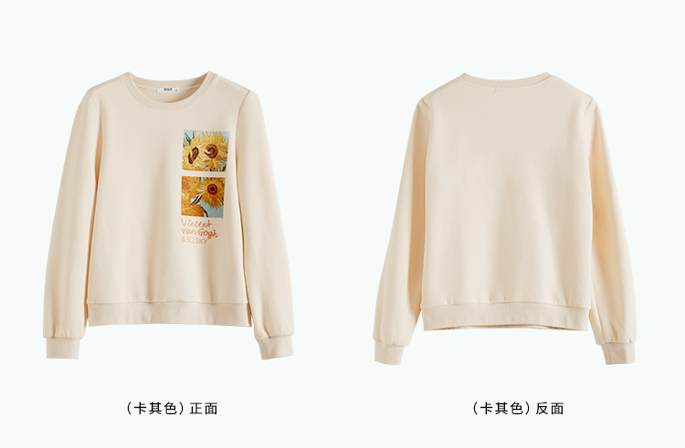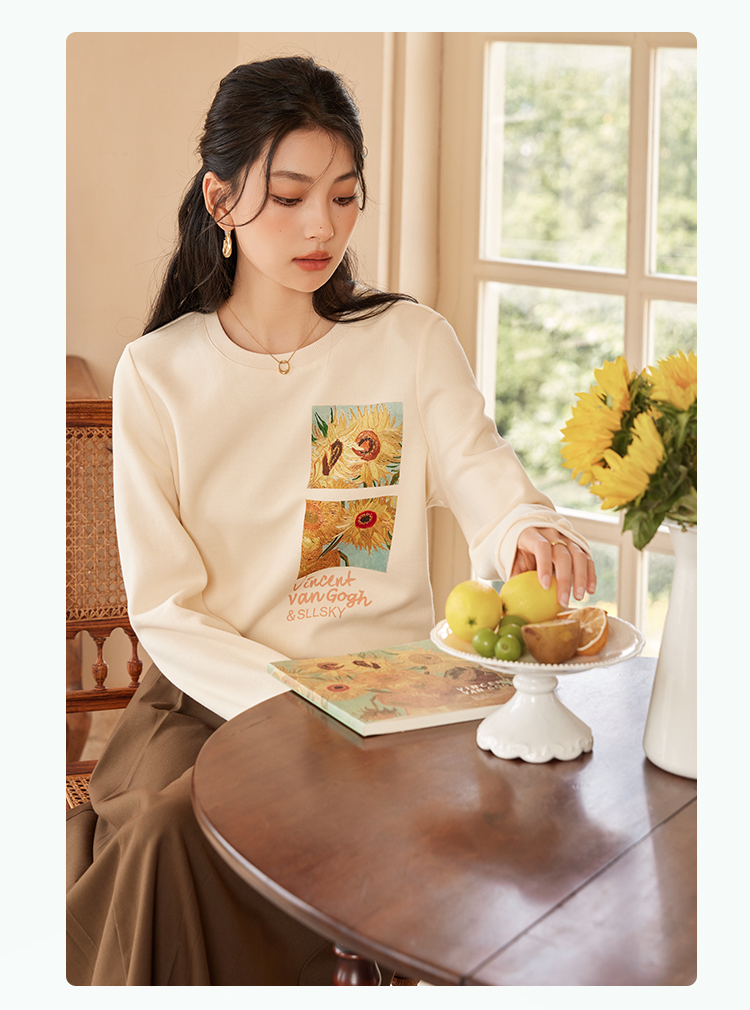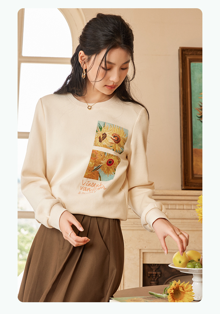 【59元福袋不支持退换】梵高联名熙世界向日葵印花圆领卫衣女2024秋秋宽松慵懒无帽套头上衣