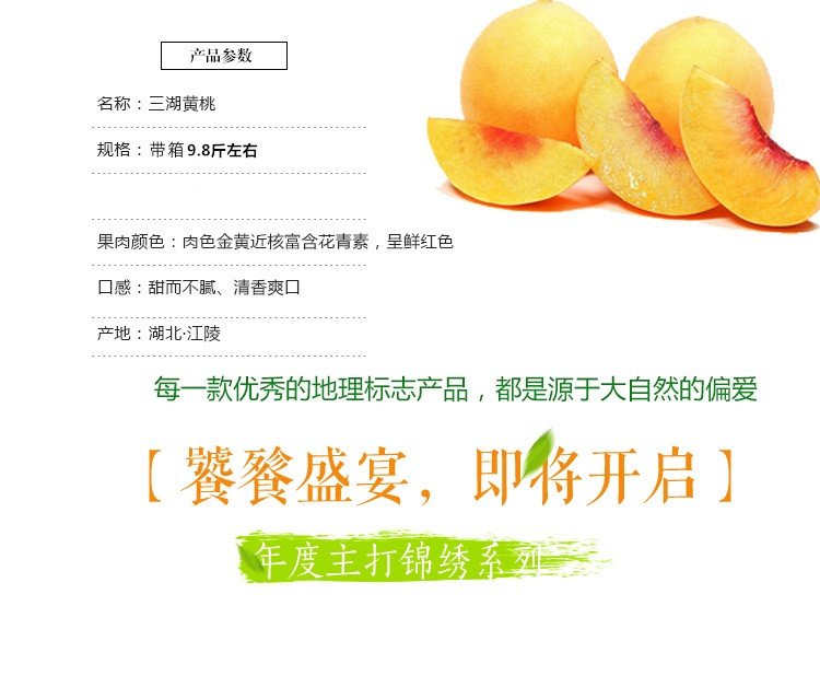 【严选】三湖锦绣黄桃现摘现发统果带箱9.8斤左右/箱 (基地直发)