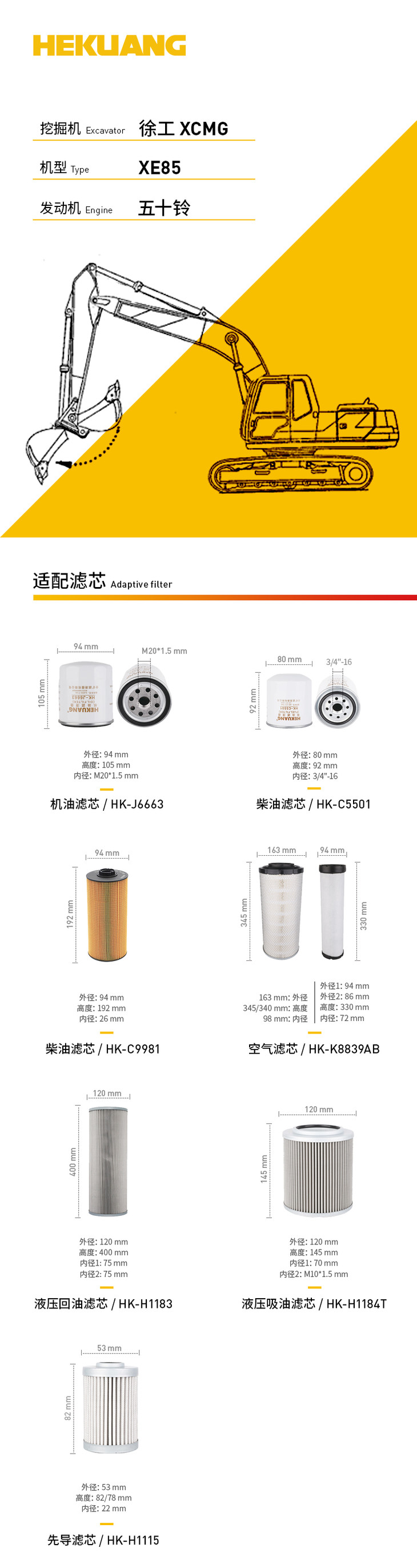 徐工XE85(五十铃)挖掘机滤芯 机油柴油空气滤芯 液压油先导滤芯