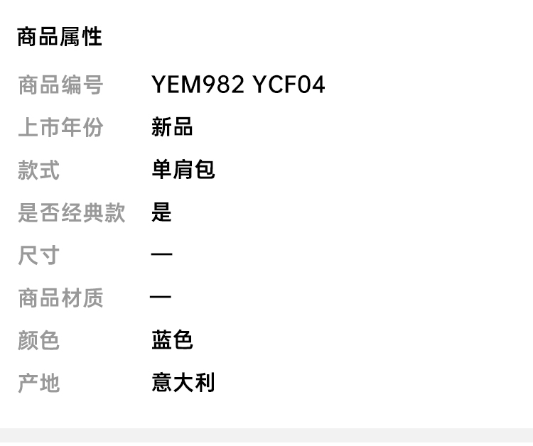 ARMANI 阿玛尼 单肩包 蓝色 YEM982 YCF04