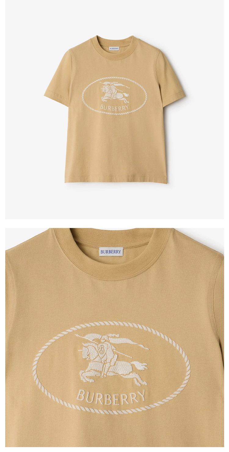 BURBERRY 巴宝莉 女士马术骑士印章刺绣棉质圆领短袖T恤 卡其色 8110926 B8626