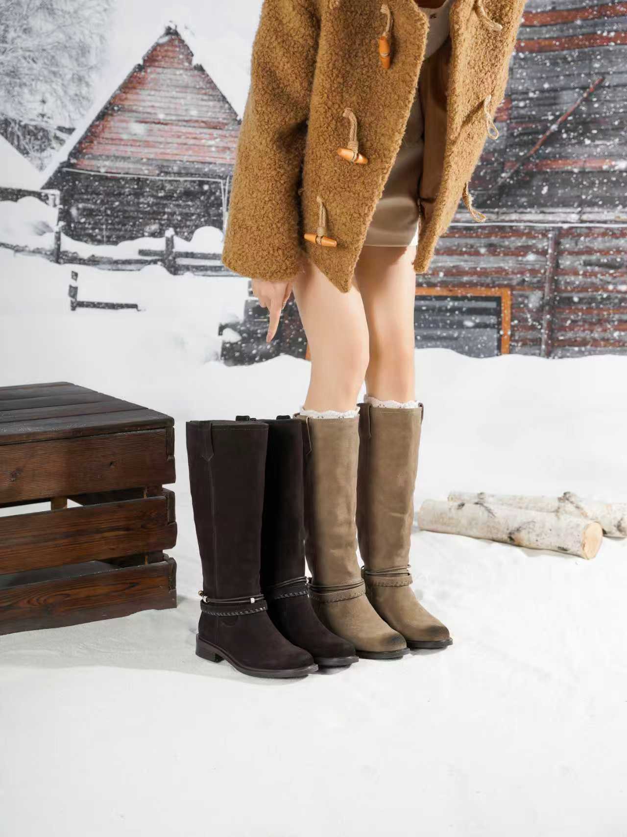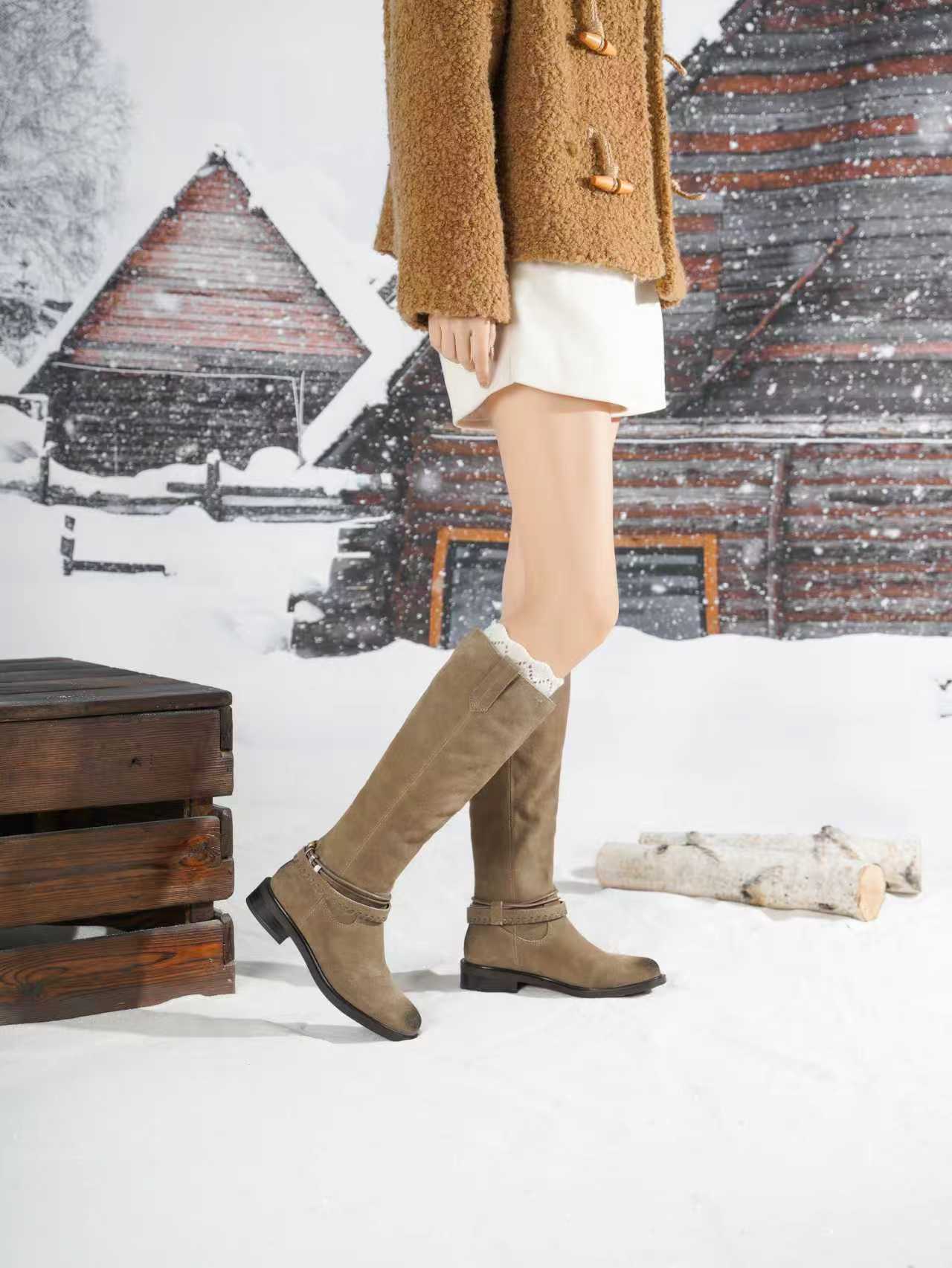 西村名物2025年冬季新款厚底低跟防滑绒面包腿显瘦及膝靴中高靴X25DQ49991