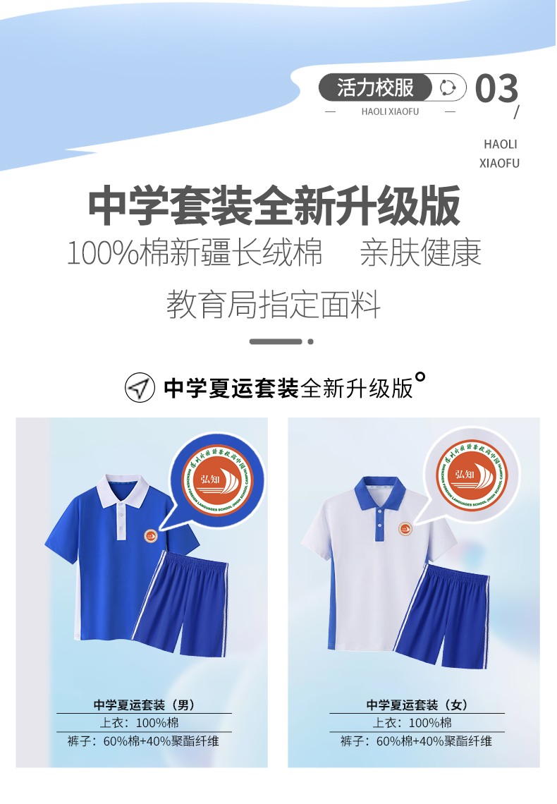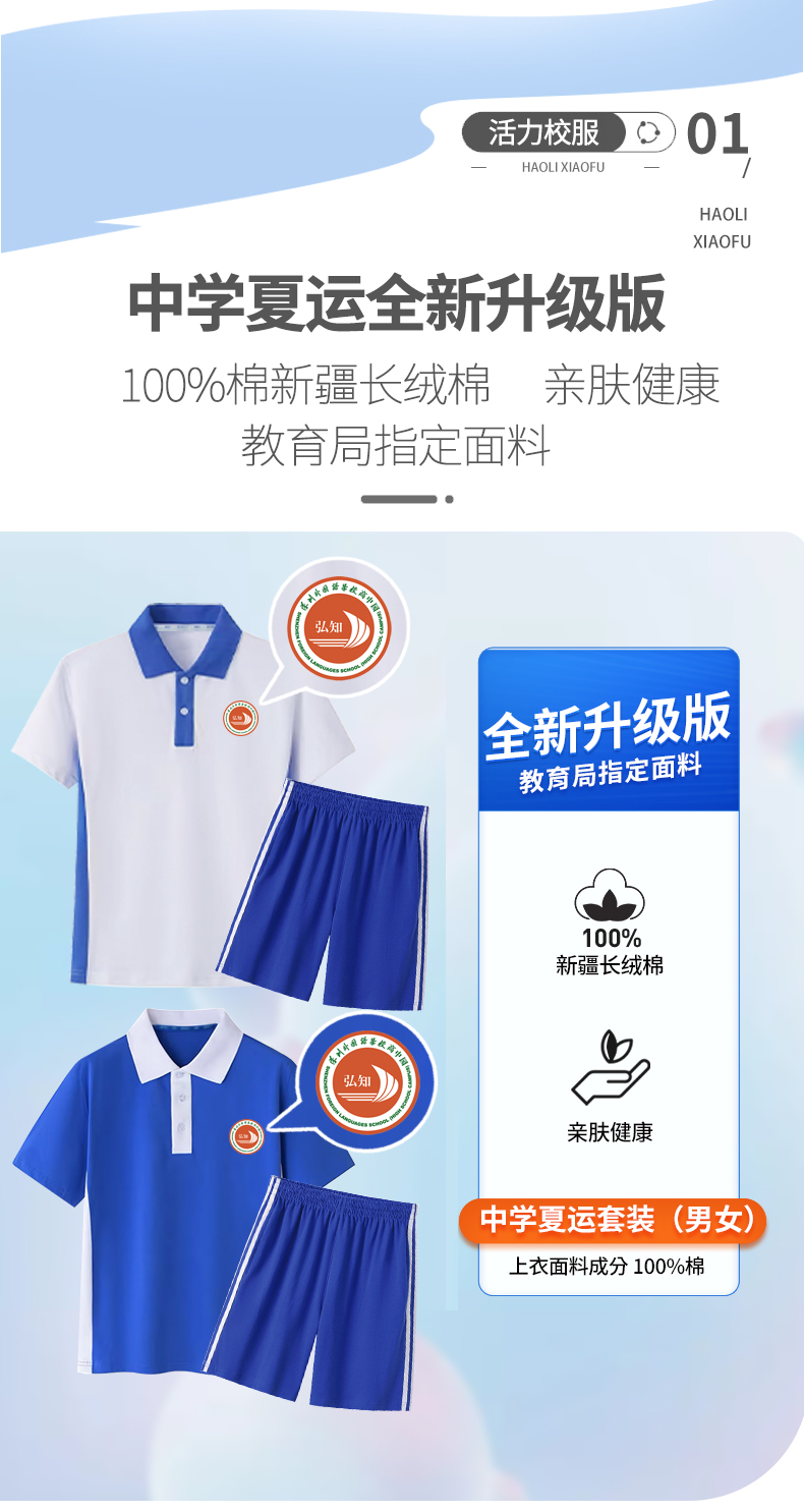 深圳中小学生速干抗菌防臭校服(高级中学印烫校徽)