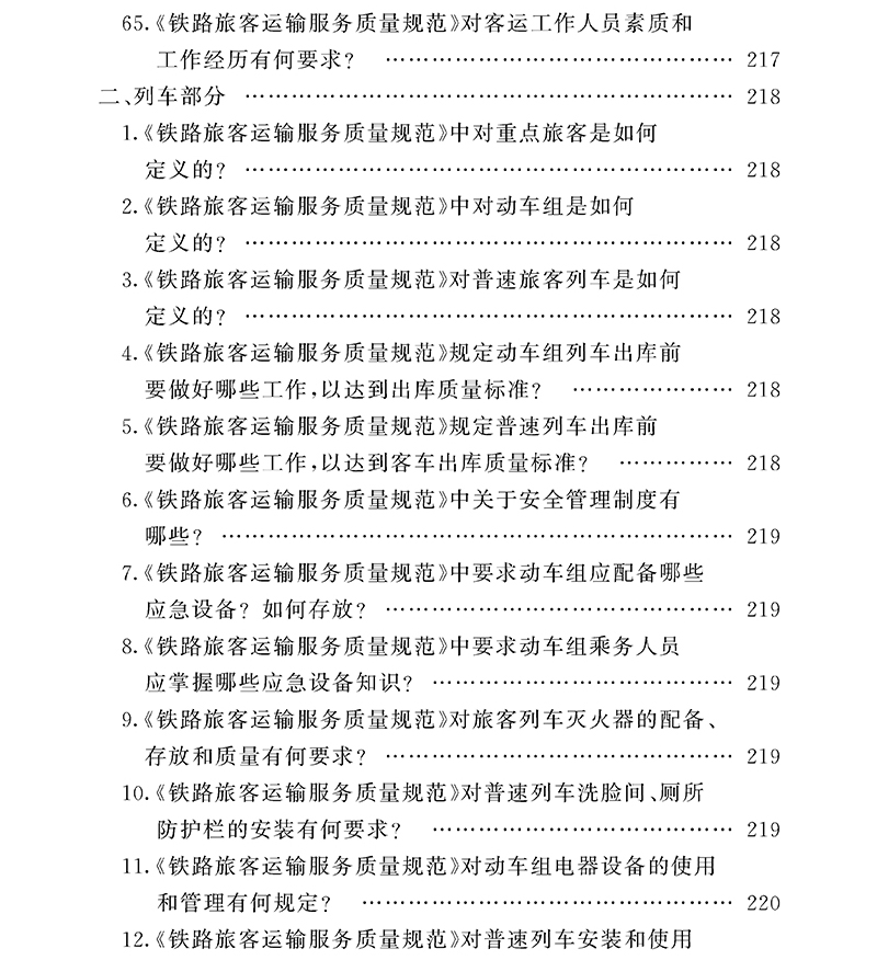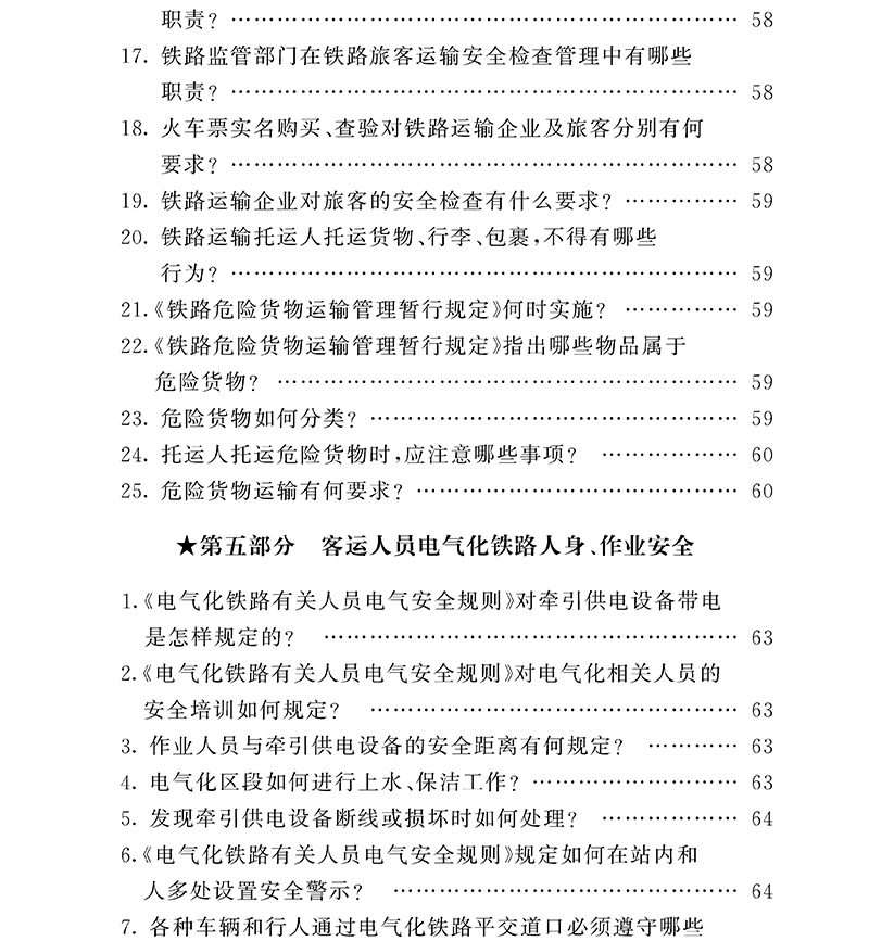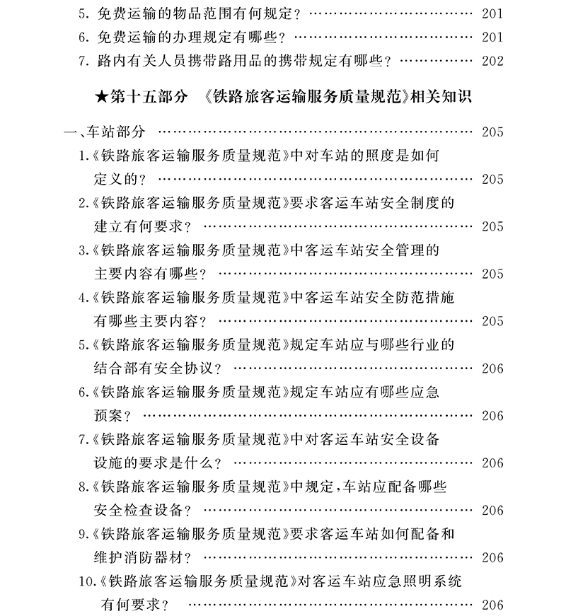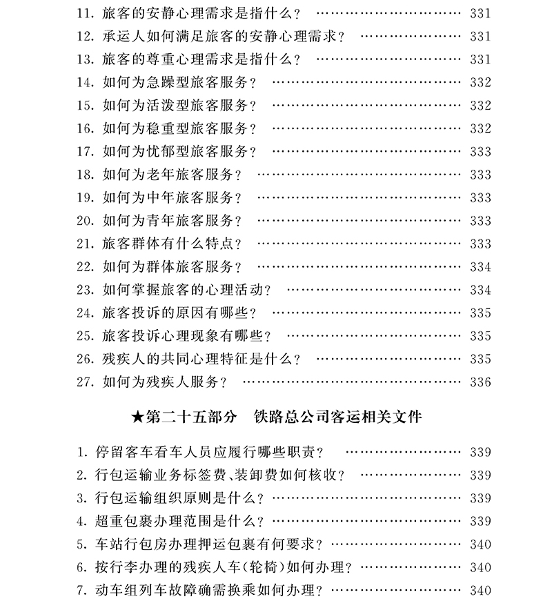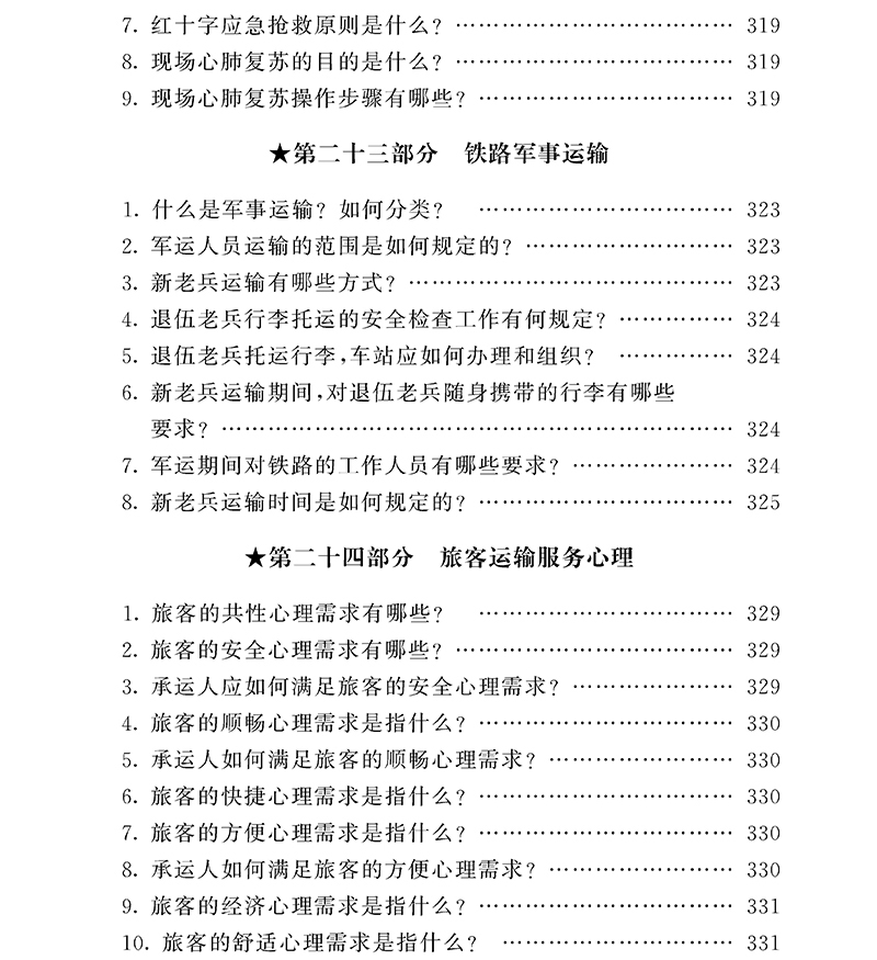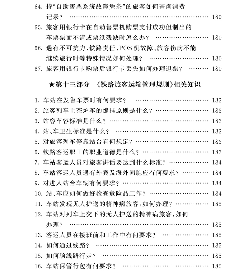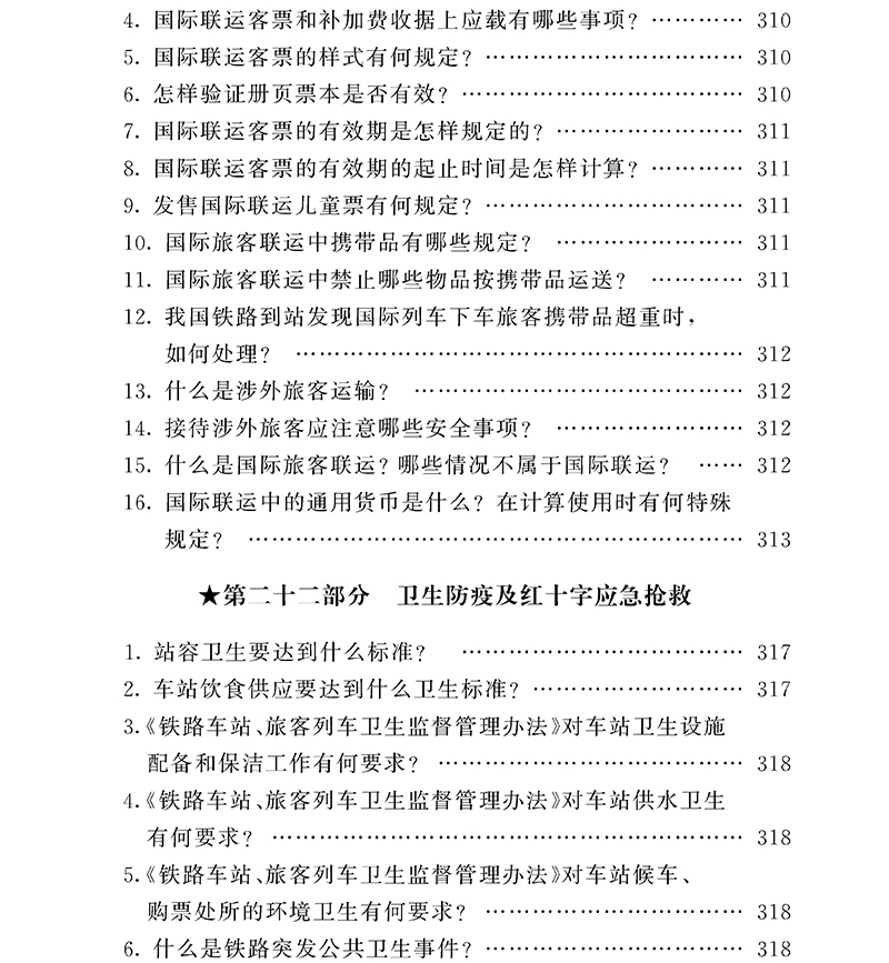 本书主要内容包括铁路职业道德,铁路路风管理,铁路安全风险管理及法律法规相关知识,铁路旅客运输安全检查管理办法及铁路安全管理条例,客运人员电气化安全、人身、作业、消防安全,铁路消防管理办法,铁路技术管理规程,铁路旅客计划运输组织工作办法,铁路运输收入管理规程,客运规章相关知识,铁路旅客车票实名制管理办法,互联网订票和电话订票相关知识,旅客运输管理规程,路内运输,铁路旅客运输服务质量规范,铁路客运记录、电报,铁路旅客人身伤害及携带品损失处理暂行办法,应急处置预案及处理方法,铁路交通事故调查处理规则,卫生防疫及红十字应急抢救,铁路军事运输,旅客运输服务心理相关知识及铁路总公司相关文件等。