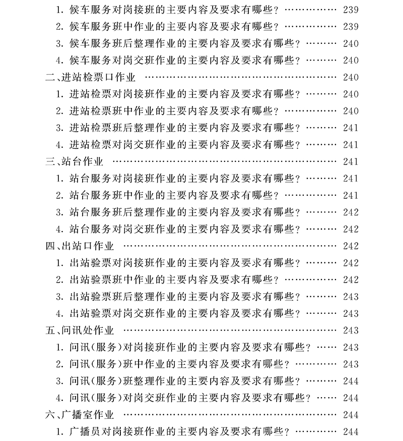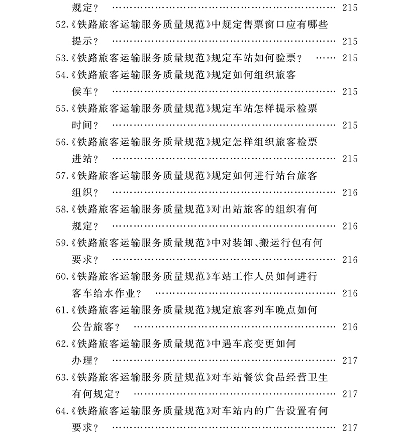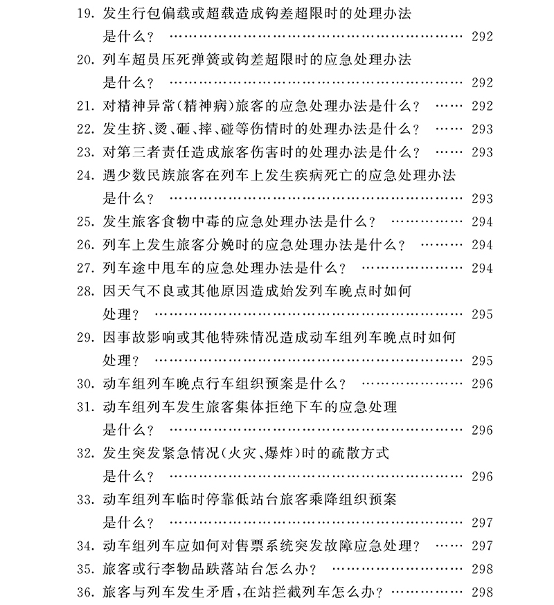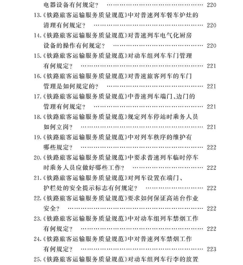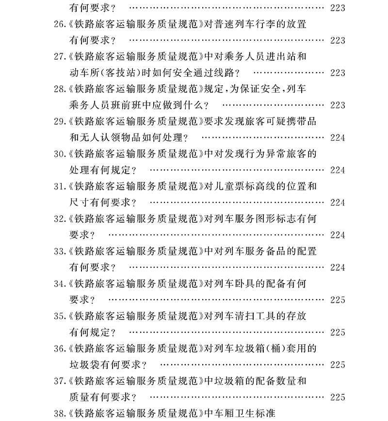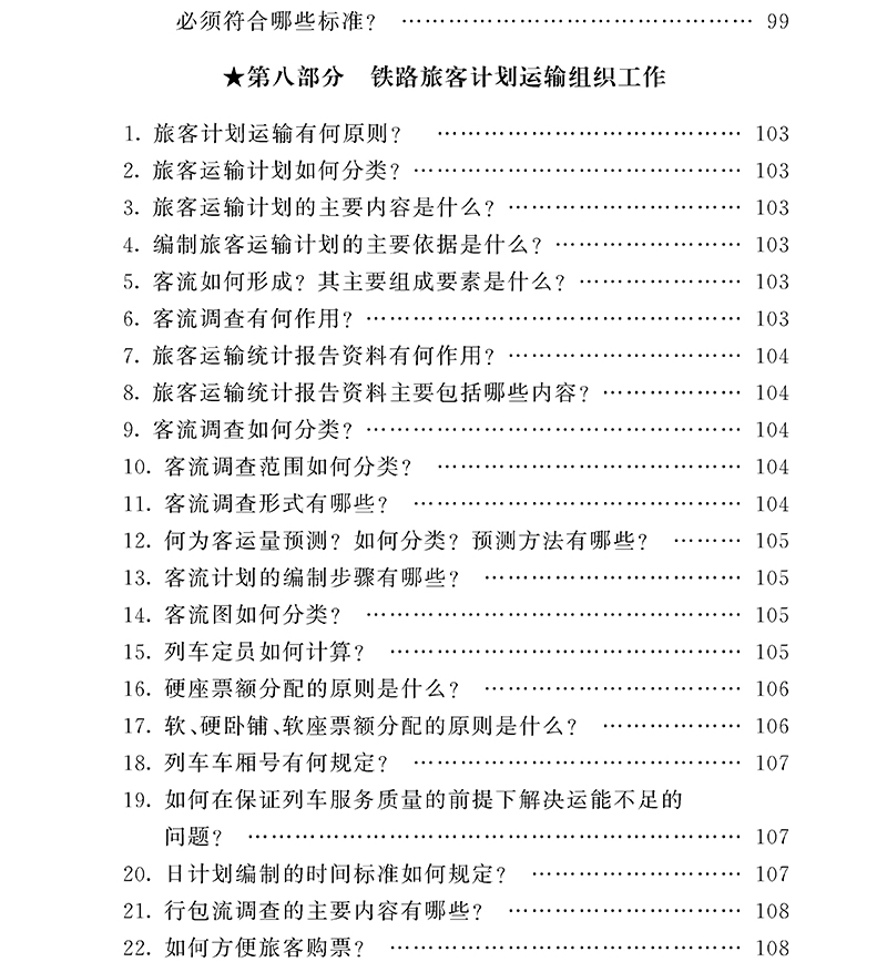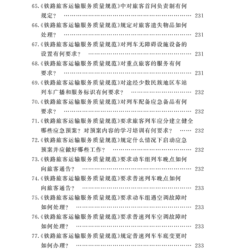 本书主要内容包括铁路职业道德,铁路路风管理,铁路安全风险管理及法律法规相关知识,铁路旅客运输安全检查管理办法及铁路安全管理条例,客运人员电气化安全、人身、作业、消防安全,铁路消防管理办法,铁路技术管理规程,铁路旅客计划运输组织工作办法,铁路运输收入管理规程,客运规章相关知识,铁路旅客车票实名制管理办法,互联网订票和电话订票相关知识,旅客运输管理规程,路内运输,铁路旅客运输服务质量规范,铁路客运记录、电报,铁路旅客人身伤害及携带品损失处理暂行办法,应急处置预案及处理方法,铁路交通事故调查处理规则,卫生防疫及红十字应急抢救,铁路军事运输,旅客运输服务心理相关知识及铁路总公司相关文件等。