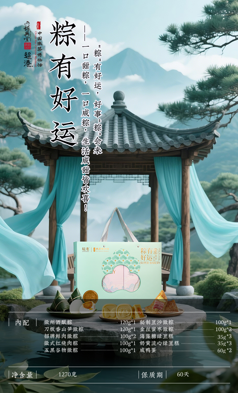 超港 粽有好运1270g 7味9粽2蛋6糕 胡兴堂粽子礼盒 端午送礼 鸭蛋绿豆糕肉粽 48小时发货