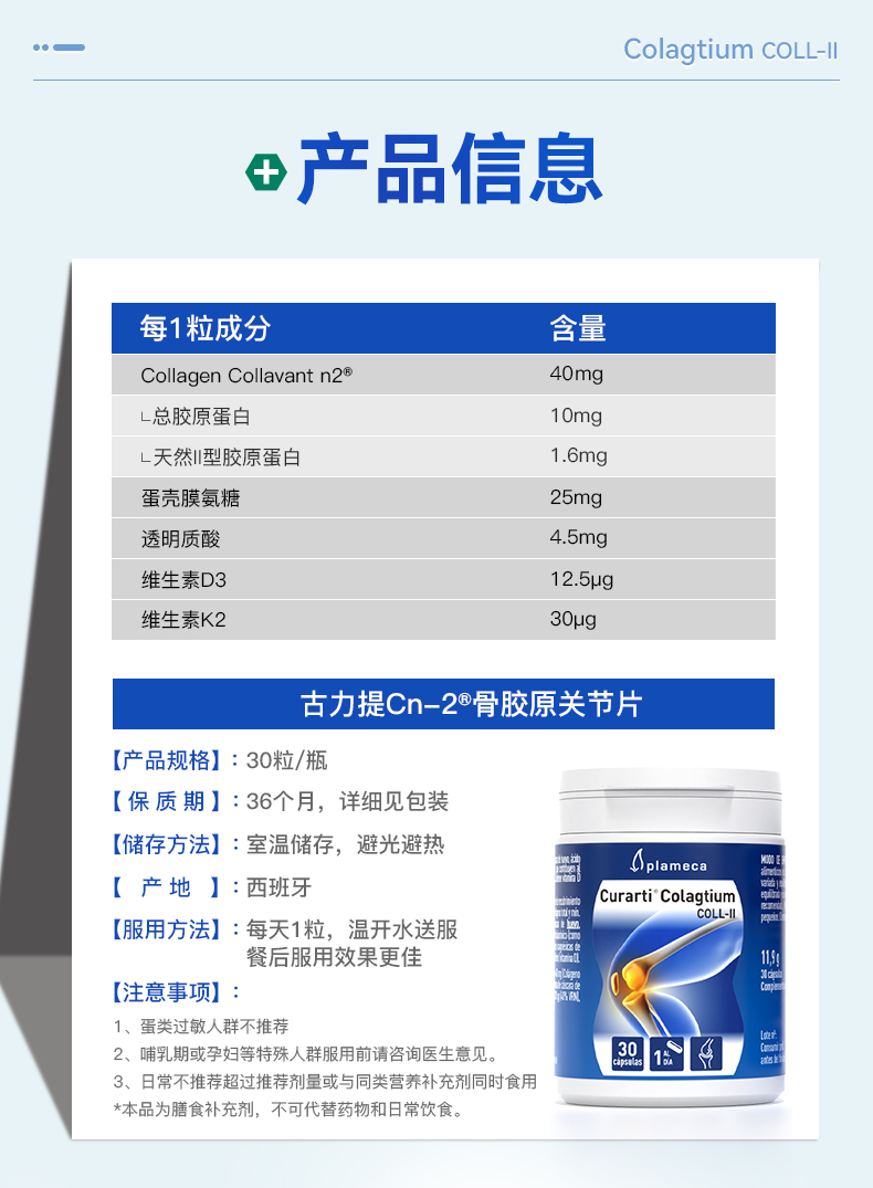 保税直发 Curarti 古力提 UC-II骨胶原关节片 30粒/ 1瓶装/3瓶装